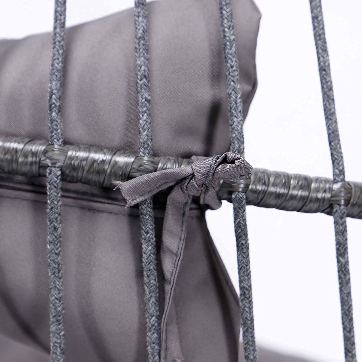 - 【STURDY AND COMFORTABLE】 Seat and frame of hammock chair is constructed of polyethylene rattan resin wicker wrapped around a aluminum frame for weather-resistant protection, strength and durability; back features nylon rope; Seat cushion and headrest pillow feature a polyester material and polyester fiberfill cores.