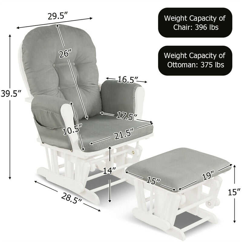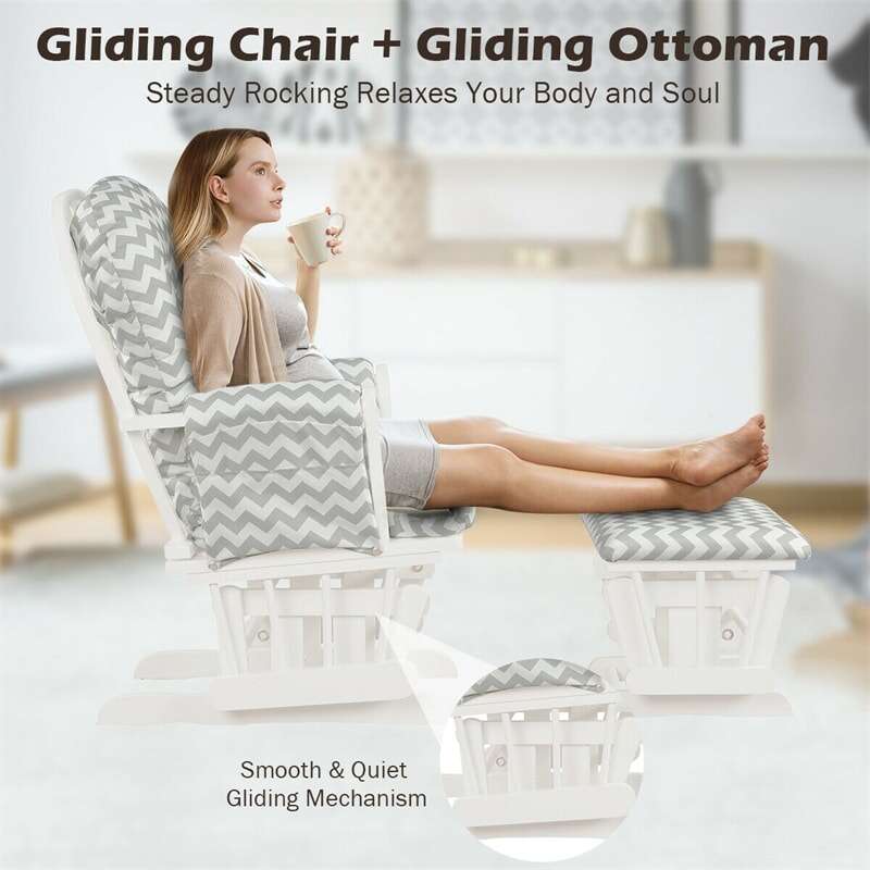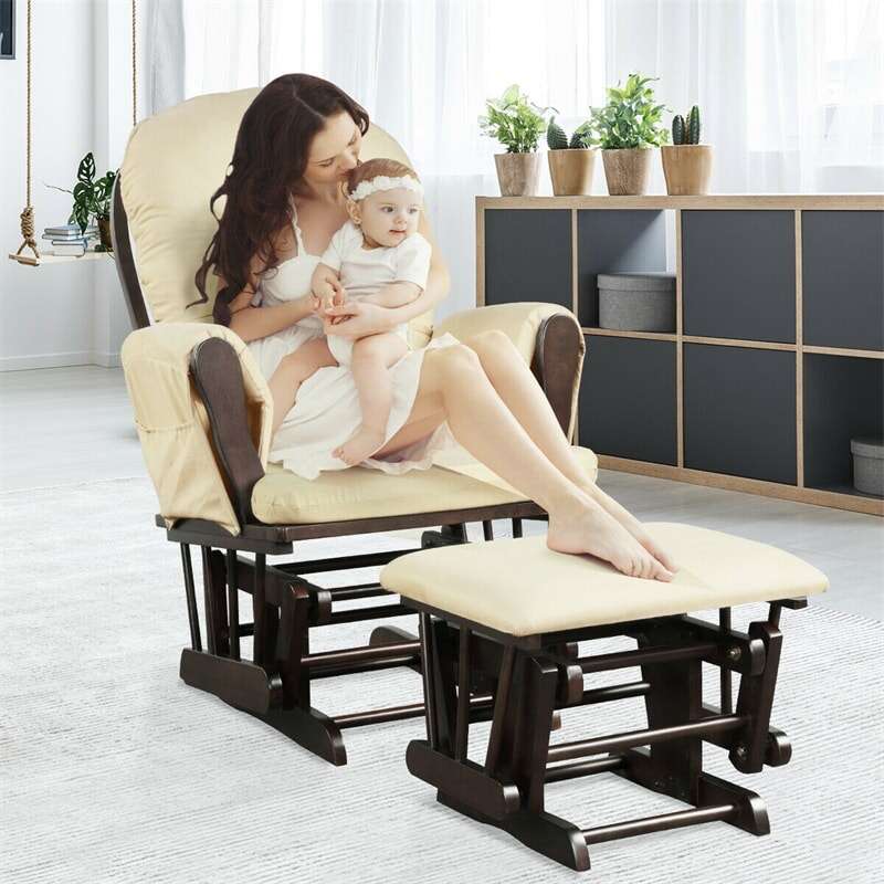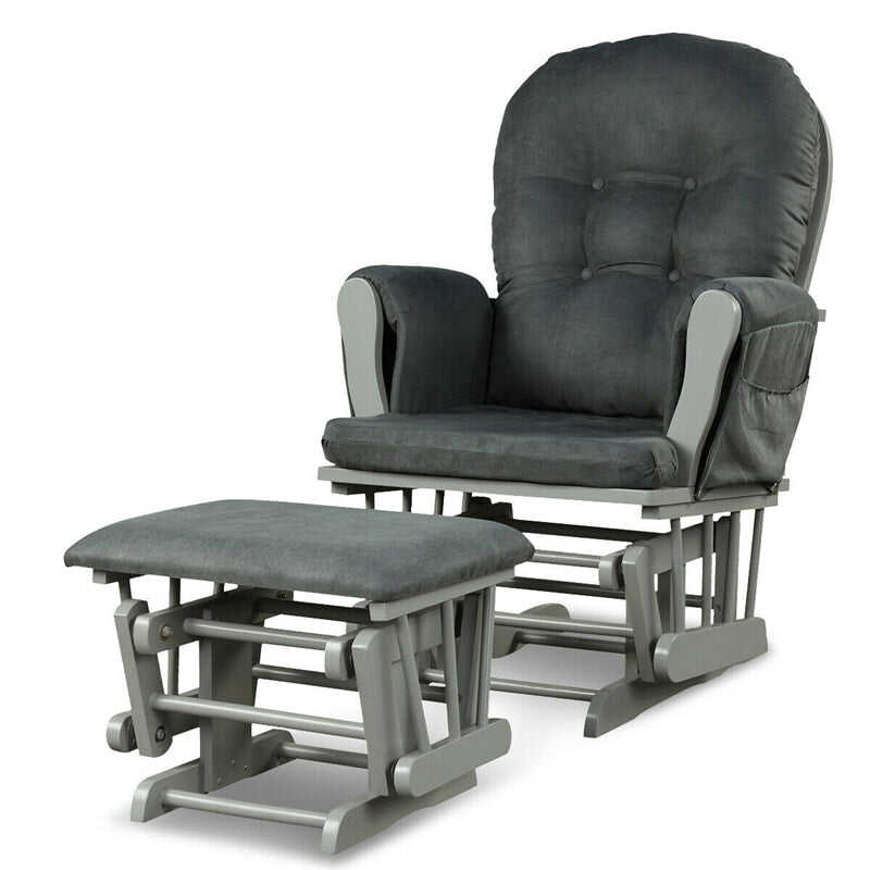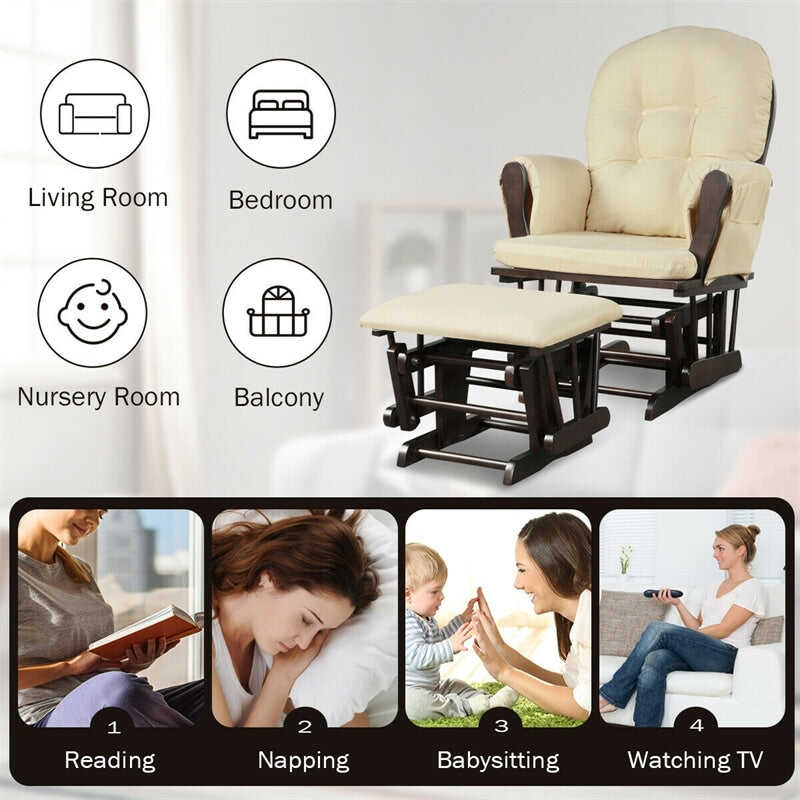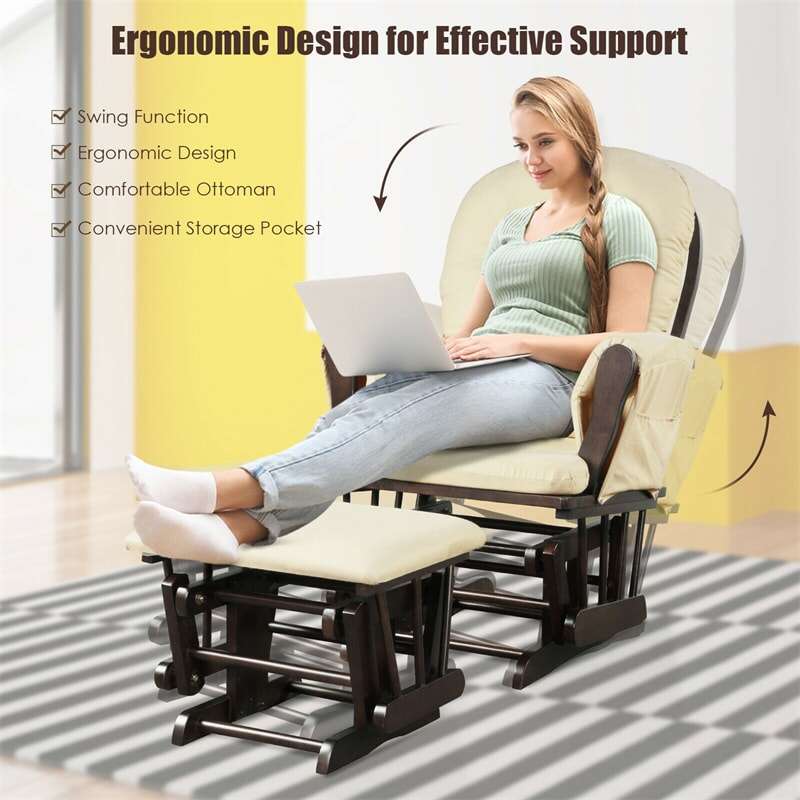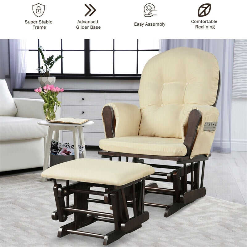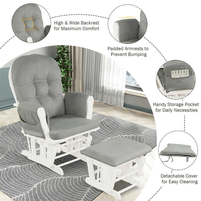Wood Baby Glider Rocking Chair Nursery Chair with Gliding Ottoman & Storage Pocket