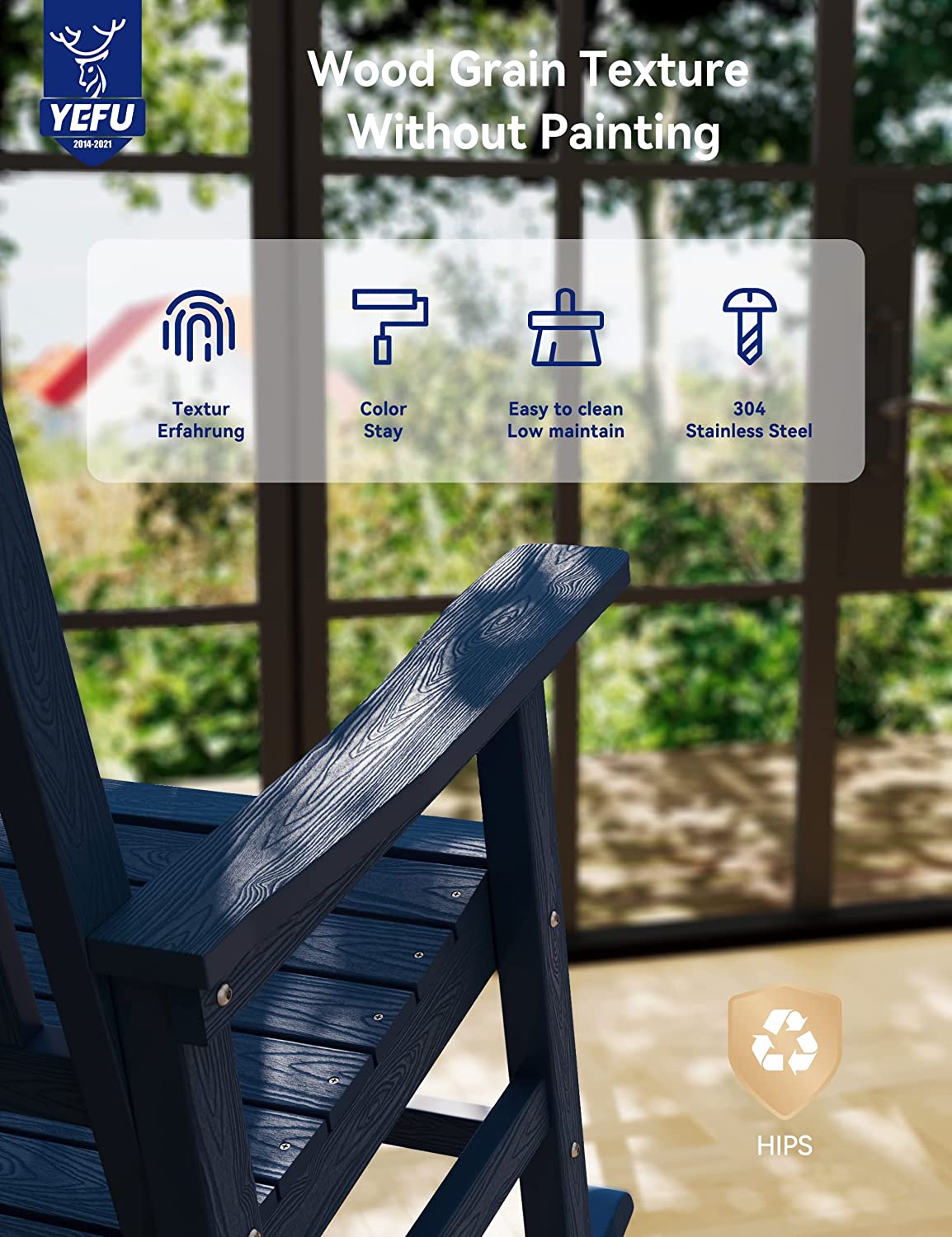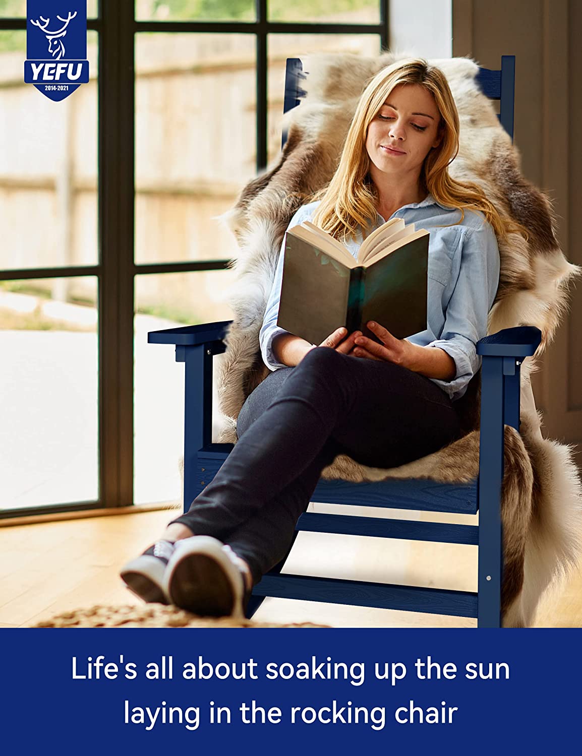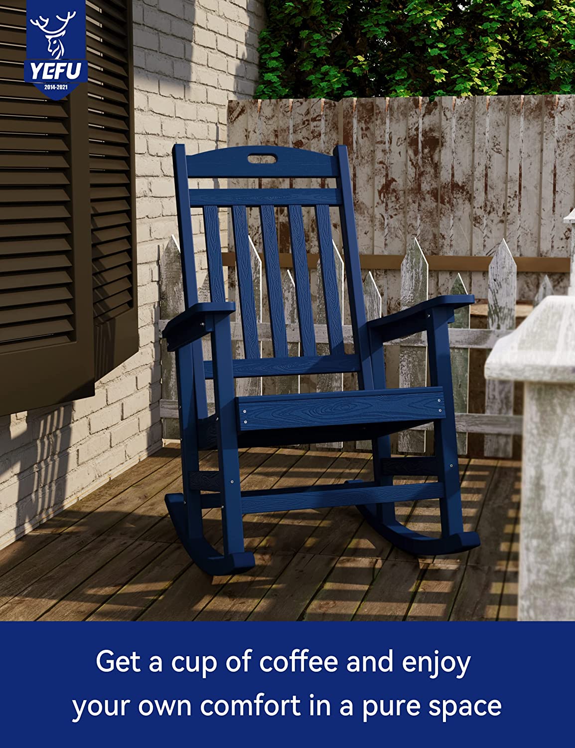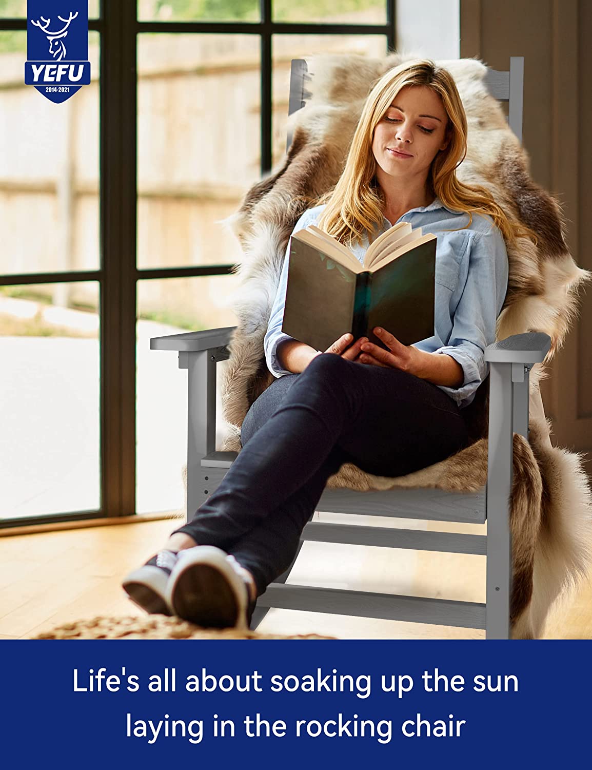 - Material: YEFU rocking chair is made of high impact polystyrene, which makes the surface material look more natural with a wooden feel. It is waterproof, anti-corrosion and anti-fading material, unlike wood which is easily rotten. Besides, the 304 stainless steel screws connected make the chair more durable.