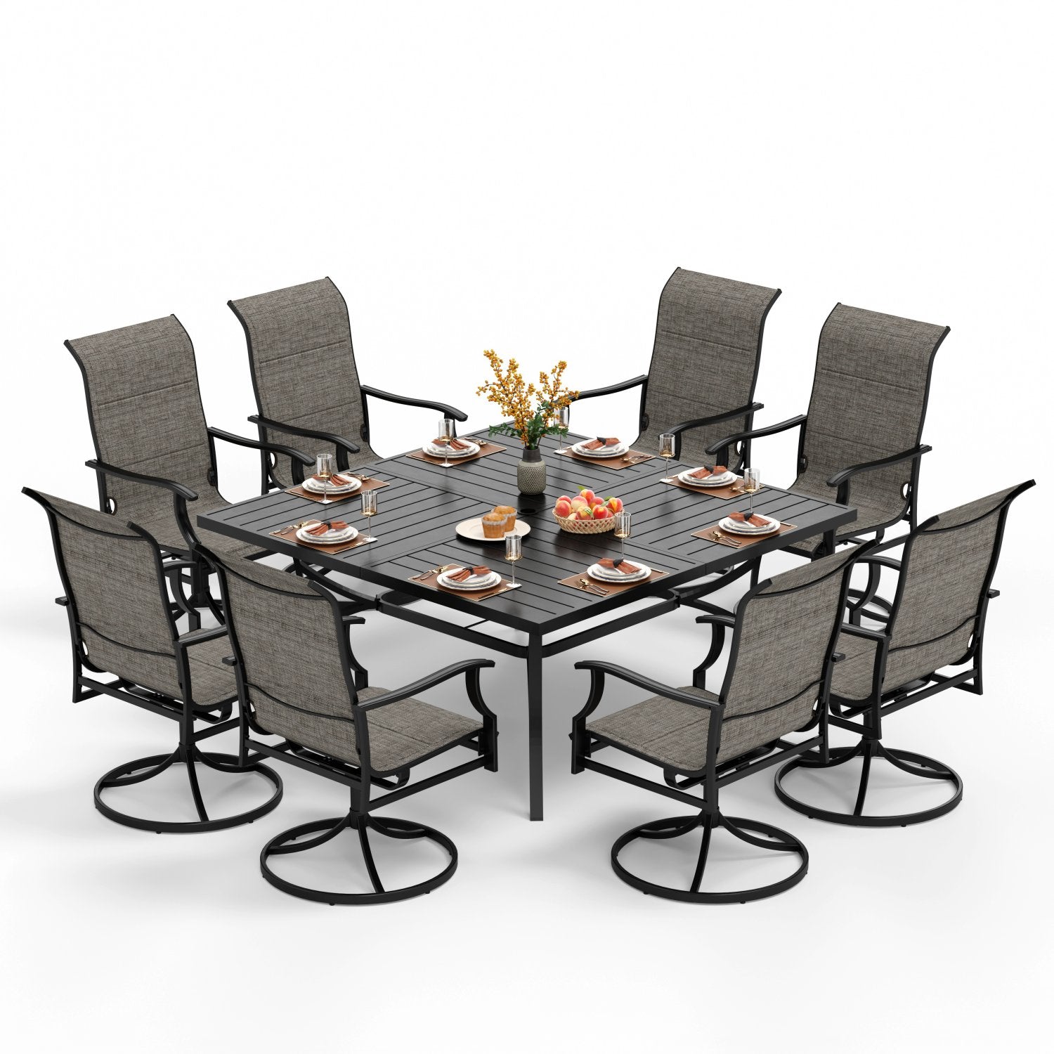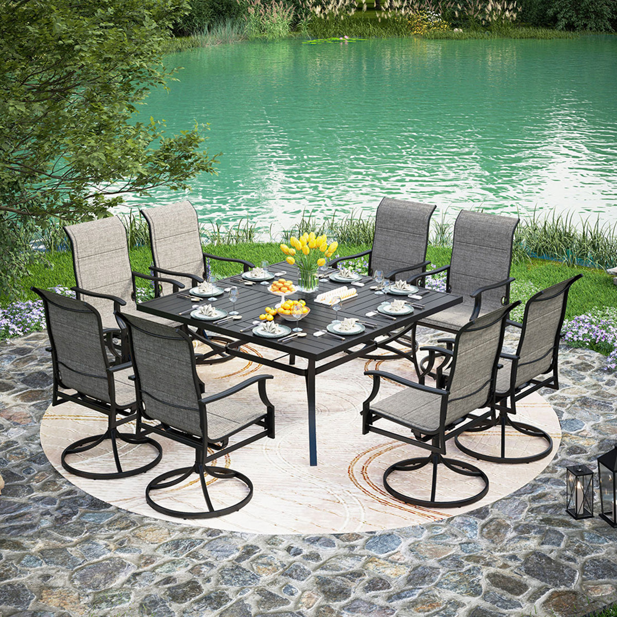 Patio Outdoor Padded Swivel Rocker Textilene Dining Chairs