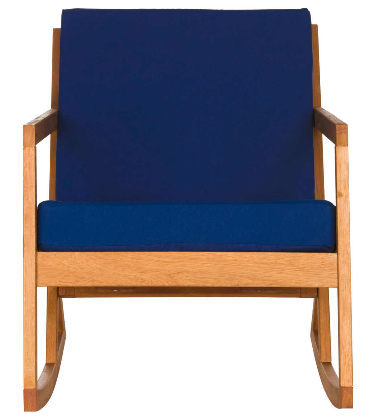 Safavieh 26" x 38" Natural & Navy Vernon Outdoor Rocking Chair