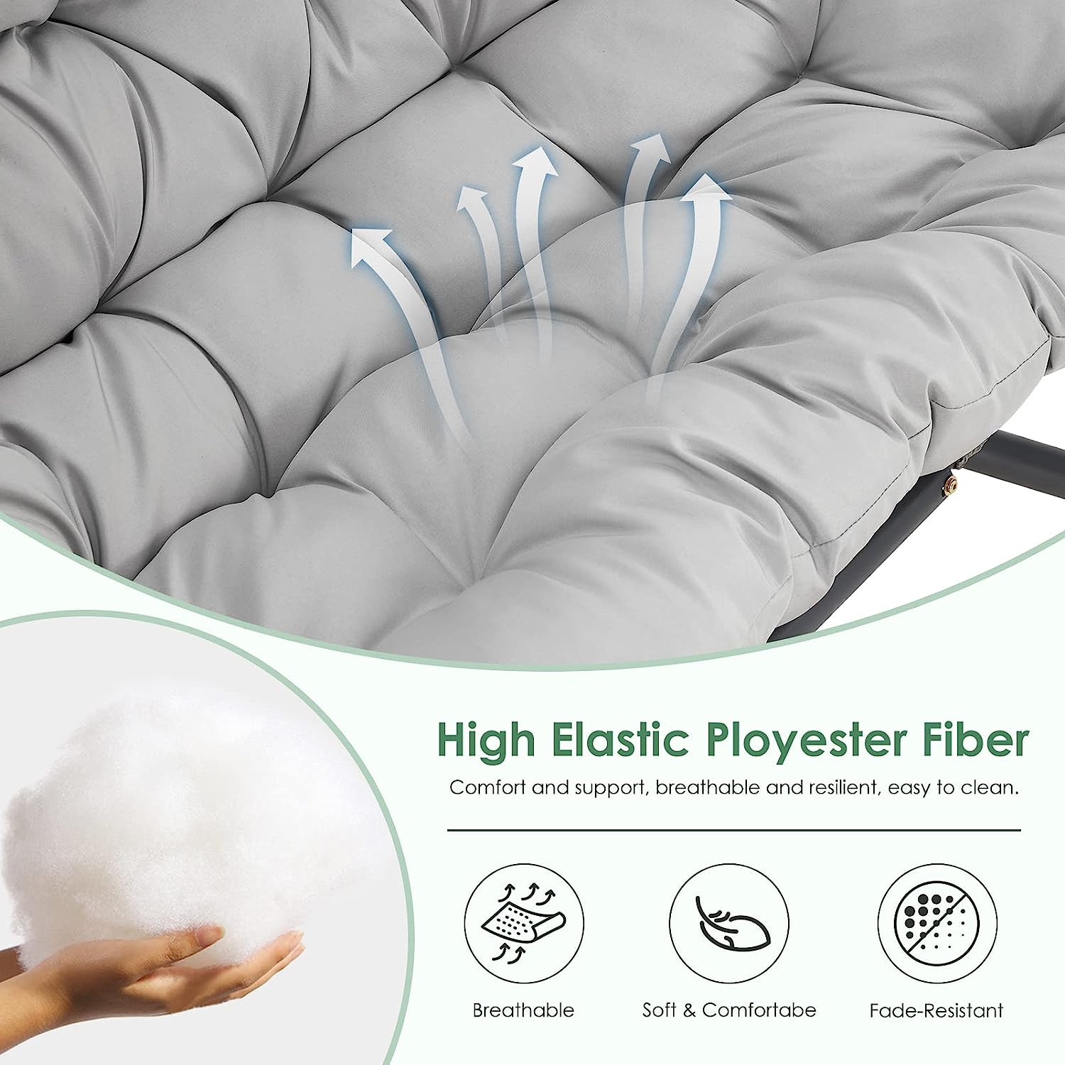 2 Person Hanging Egg Chair with Stand for Outdoor, Patio Hand Made Rattan Wicker Double Egg Swing Chairs Hammock Chair with UV Resistant Cushion and Metal Frame, Porch Swing Loveseat for Backyard