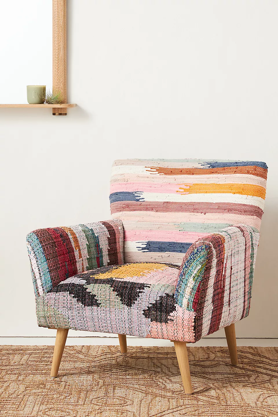 Upholstered Rocking Chair High Back Glider Rocker Chair Mid-Century Nursery Chair Modern Fabric Armchair with Wood Base
