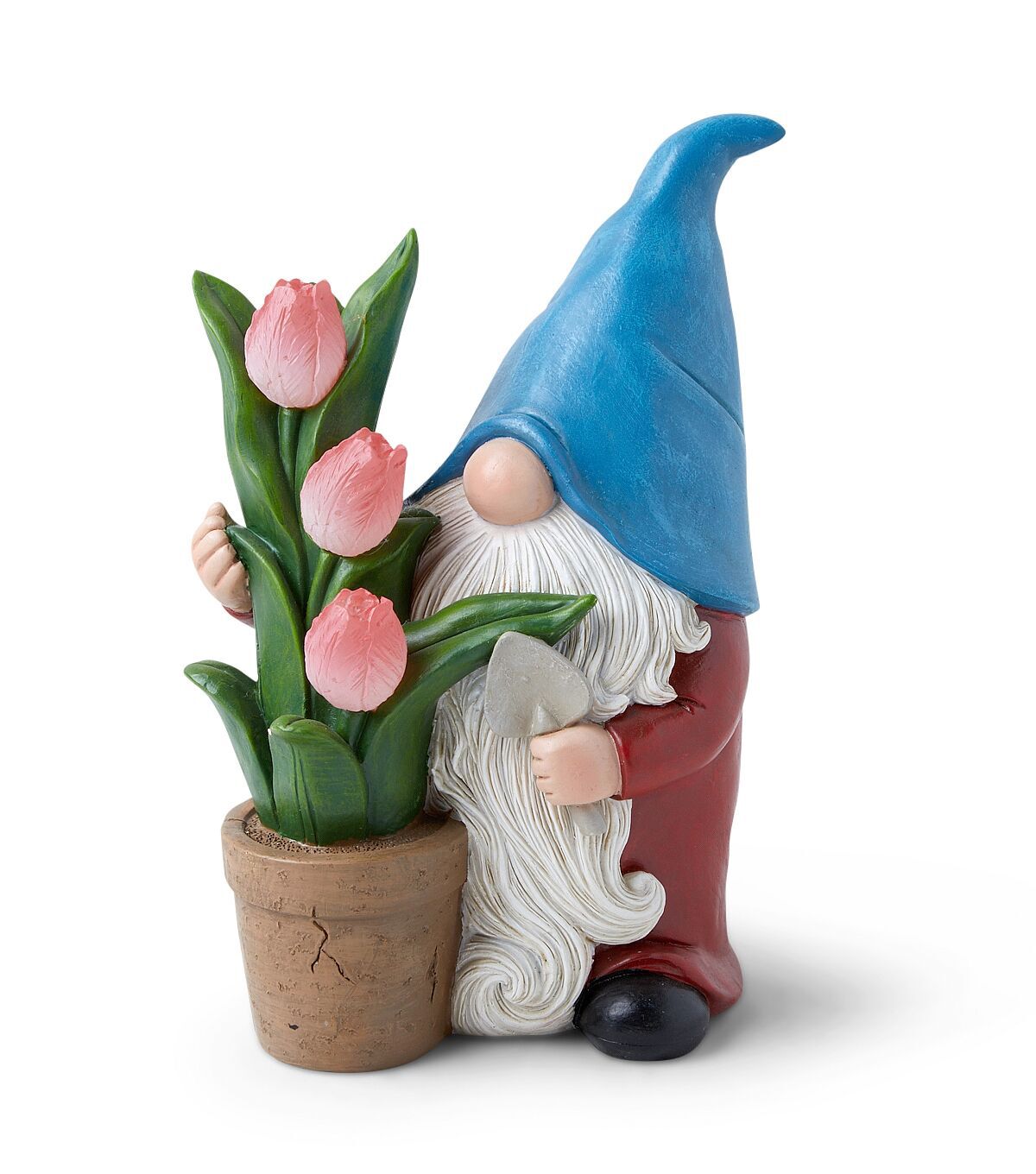 9" Spring Gnome & Tulip Pot Outdoor Solar Garden Statue by Place & Time
