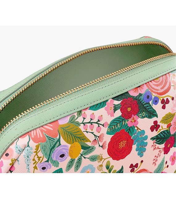 Stow toiletries and other essentials at home or away with our Garden Party large cosmetic pouch. Made from a structured material with a textured finish, it is simple to wipe clean and will hold up to everyday use. A wide opening makes it easy to see what’s inside, and the brass zipper and pull add a perfect finishing touch.