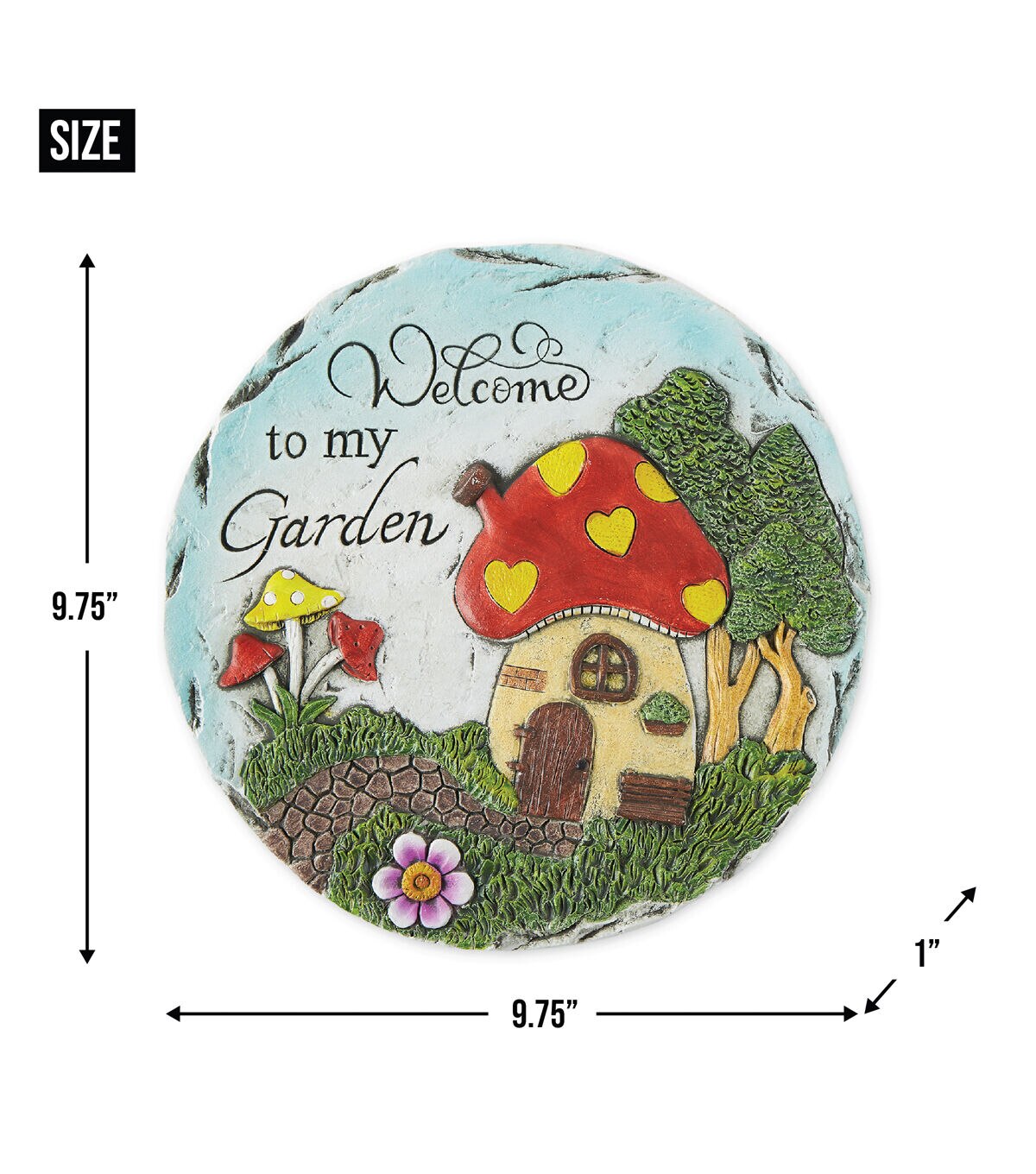 Spruce up your pathway or garden with this adorable stepping stone. Perfect for marking pathways or as accents in flower beds and vegetable gardens. Tthis garden accent will bring charm and appeal to any space. Simply place in the desired location to add a whimsicall touch to the outdoors! This stepping stone measures 9.75" x 9.75" x 1" and is made of cement to create a durable and decorative garden pathway. This stepping stone is weather resistant and easy to care for. To clean your stepping stone wipe with a soft damp cloth.
