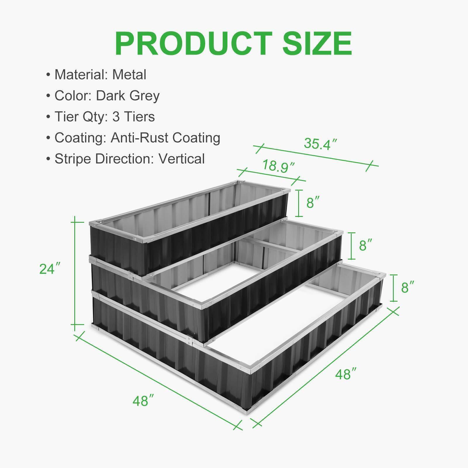 4x4x2ft 3Tier Metal Raised Garden Bed