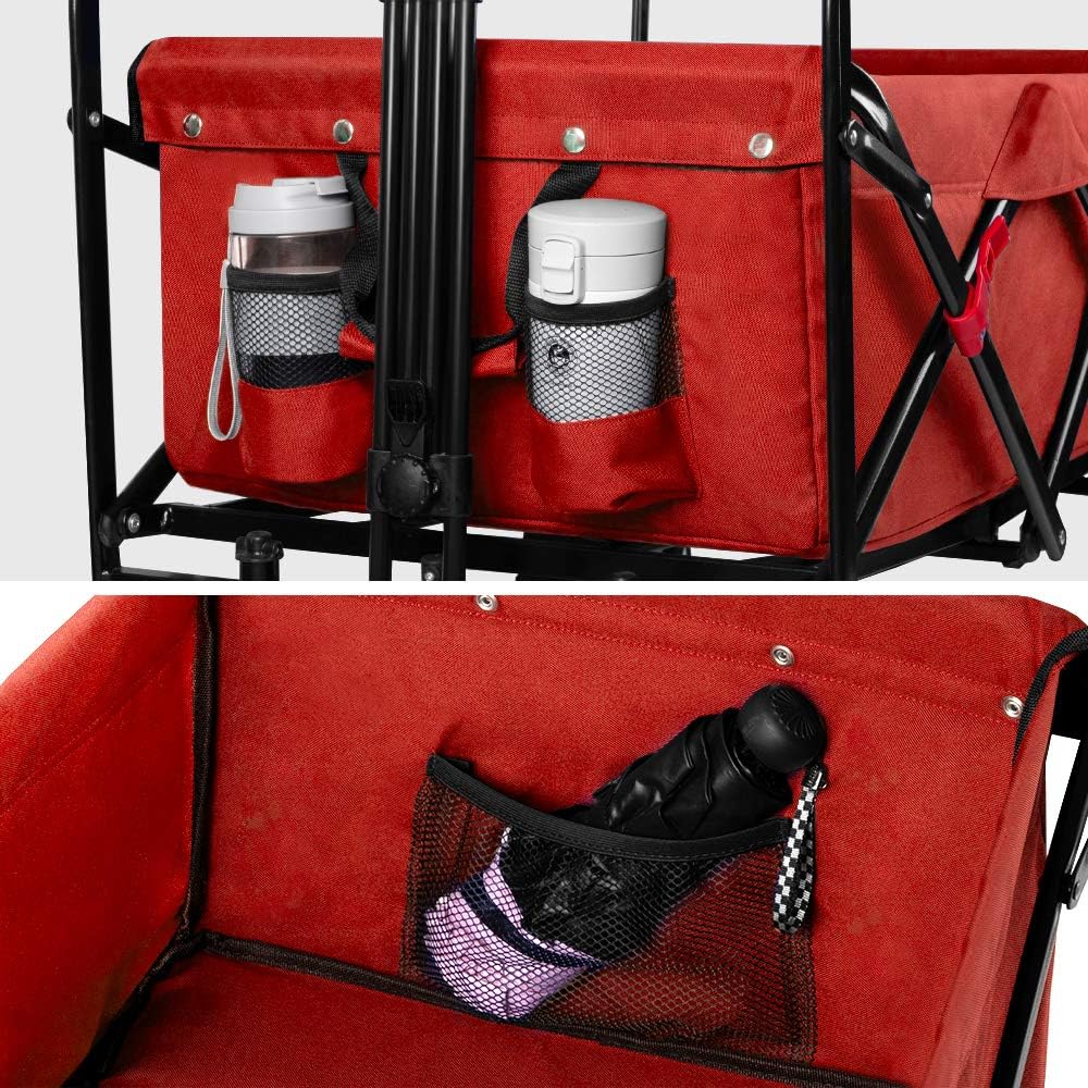 - Large capacity : large load folding beach wagon cart outside dimensions approx 34.3"lx20"wx26.4"h. The collapsible utility wagon cart inside size is 31"lx17.7"wx10.6"h. Ground to the top of the handle is 38.6". Two cups in the fabric cup holders are not included.