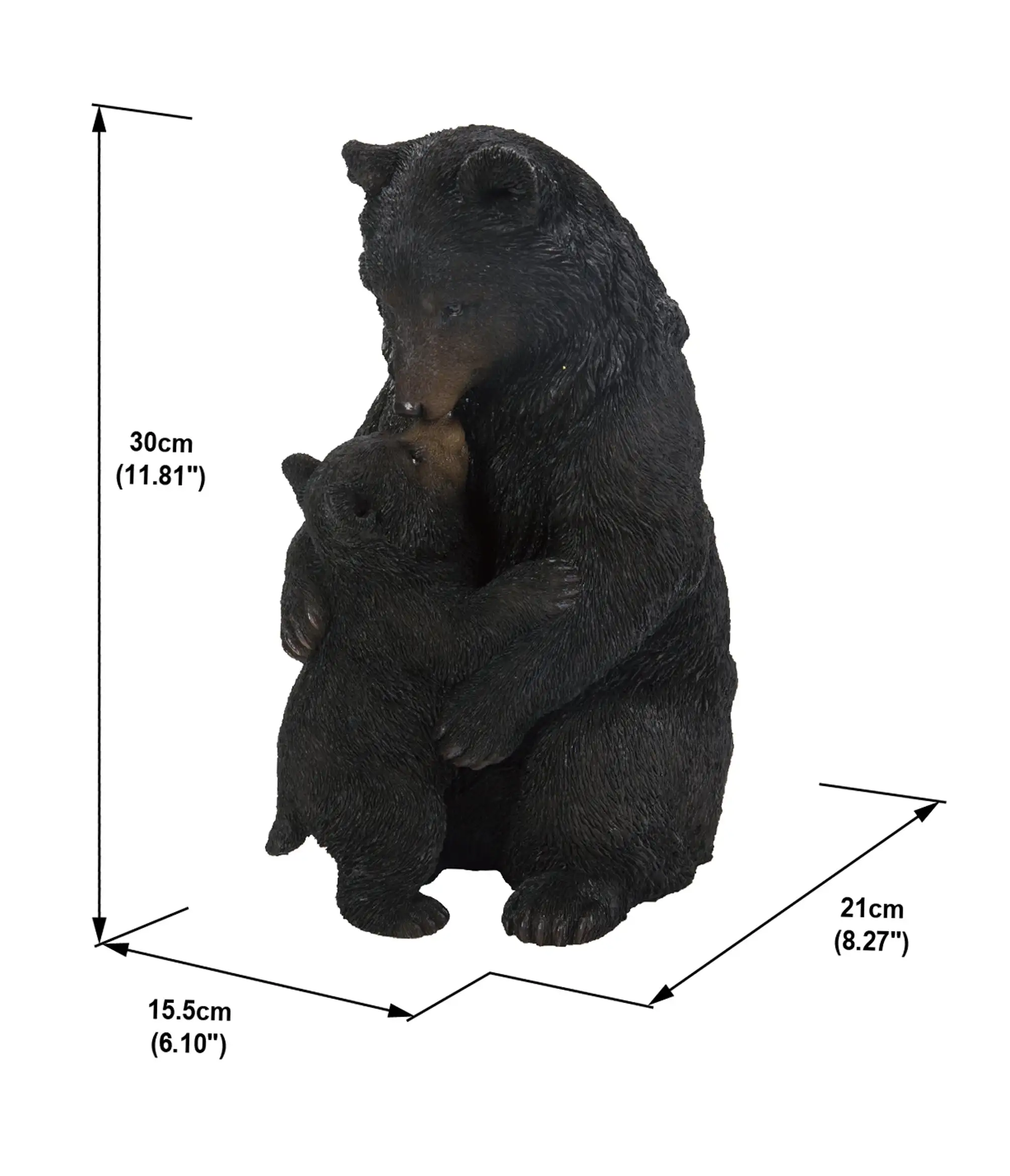 Cuddling Mother and Baby Bear Garden Statue - Black