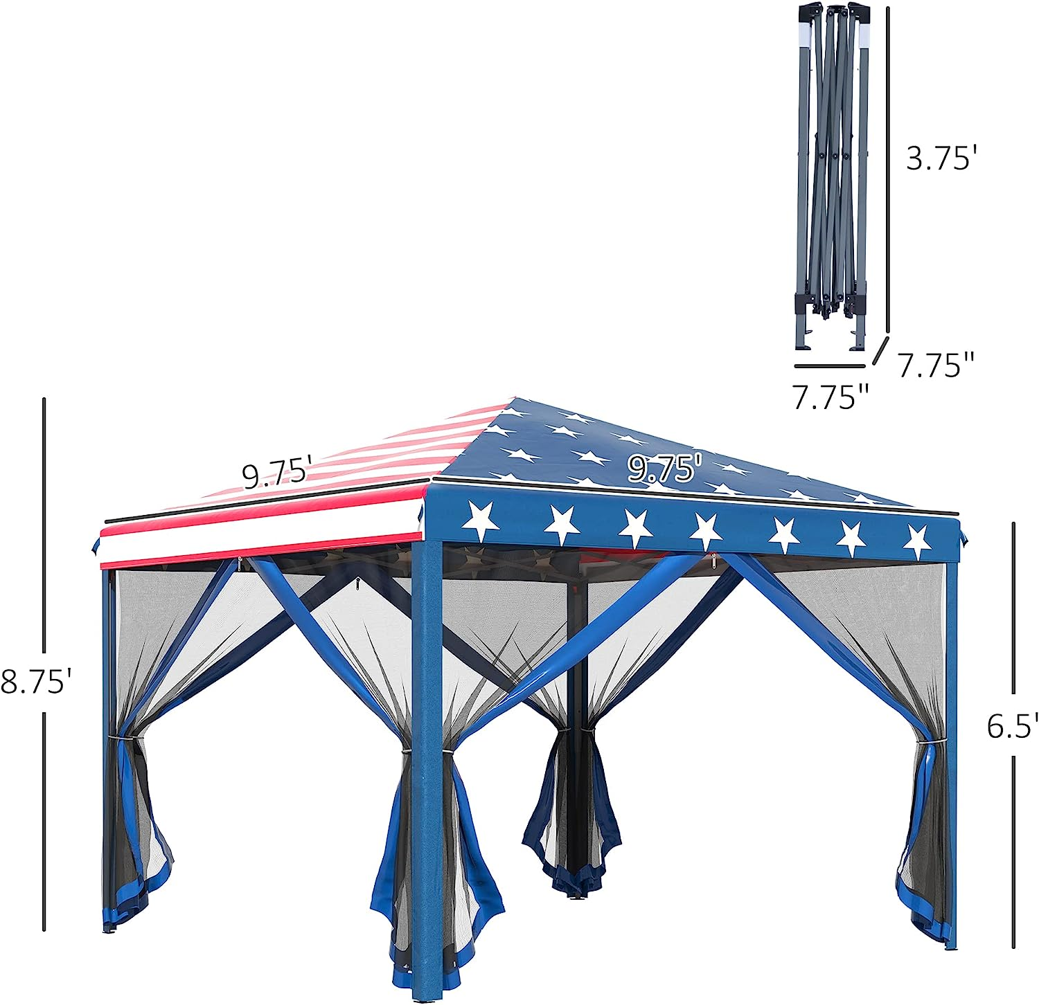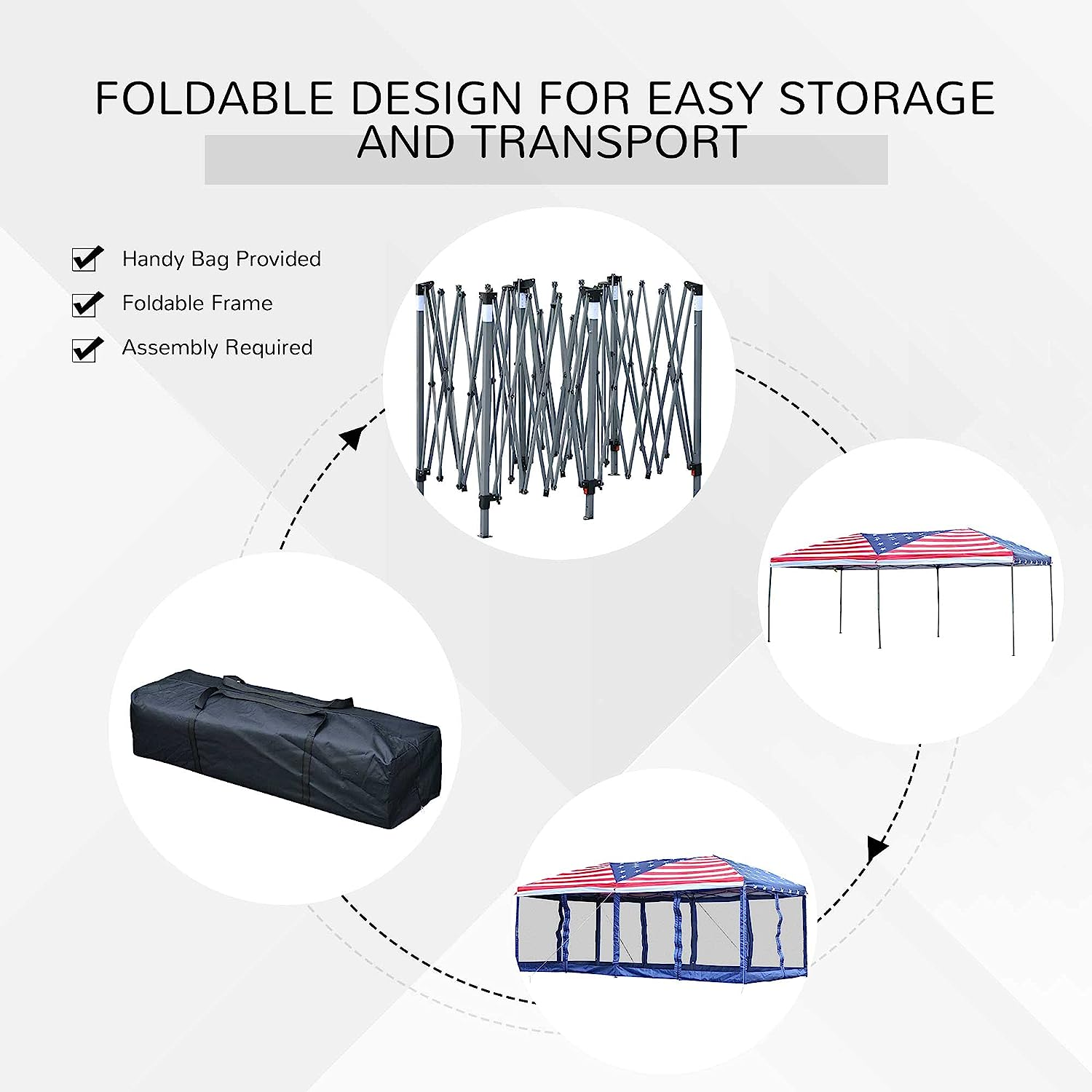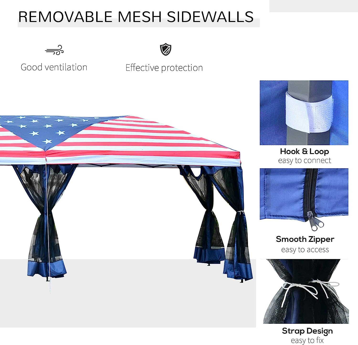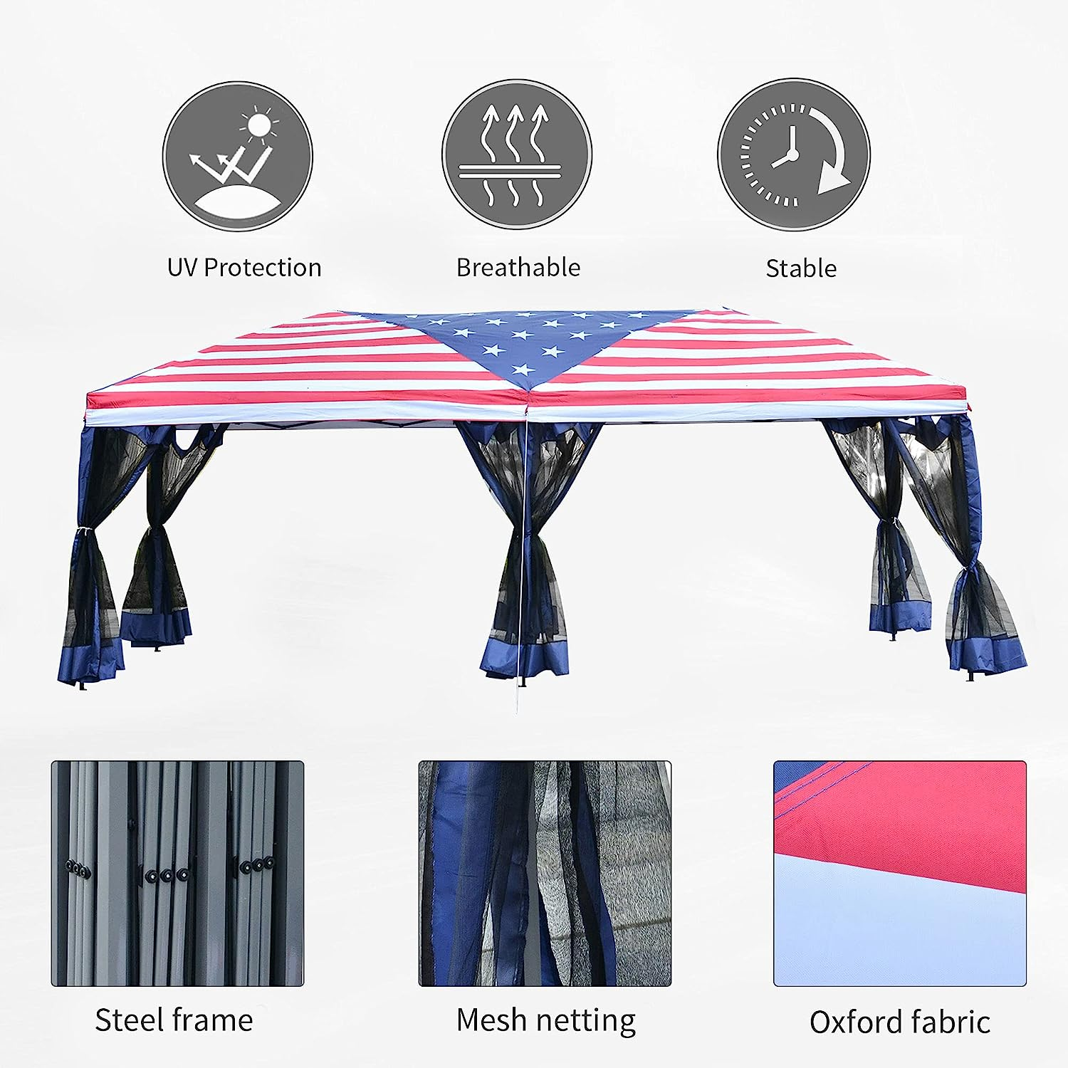 Outsunny 10' x 20' Pop Up Canopy Tent with Netting, Heavy Duty Large Party Tent, Instant Sun Shelter with Carry Bag for Backyard Garden Patio, American Flag
