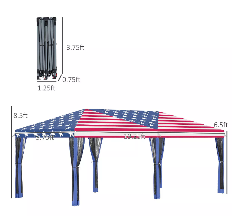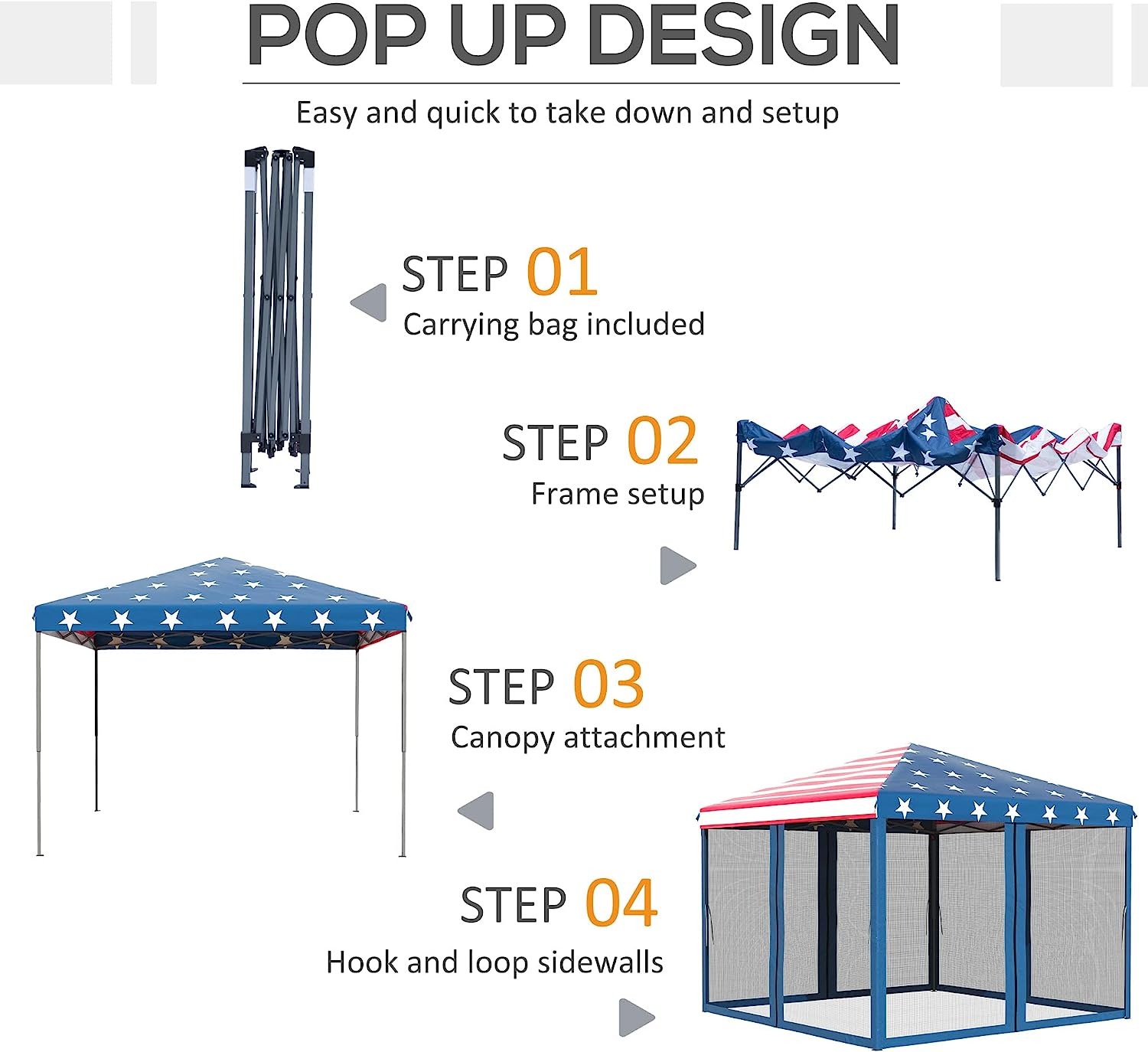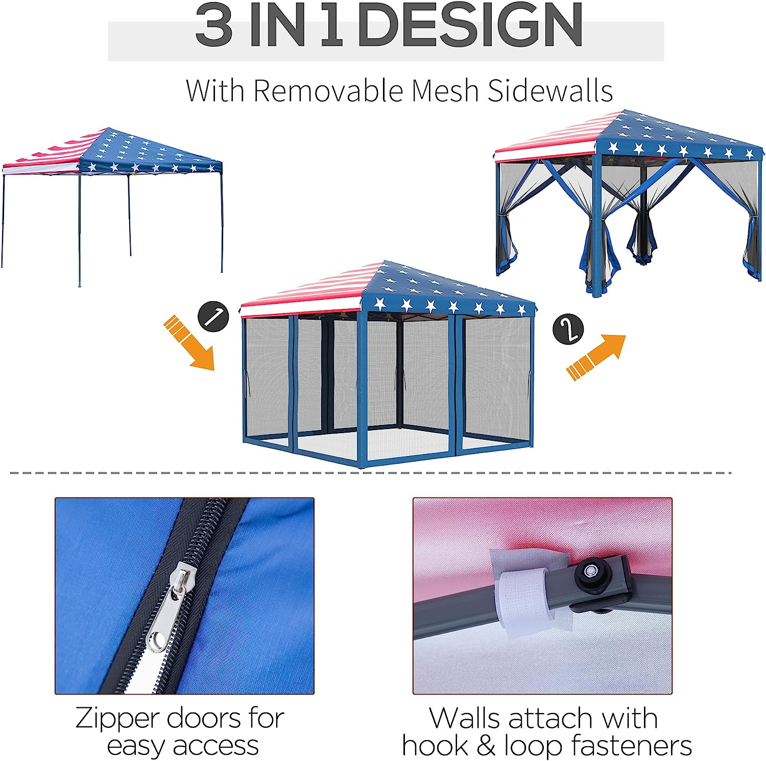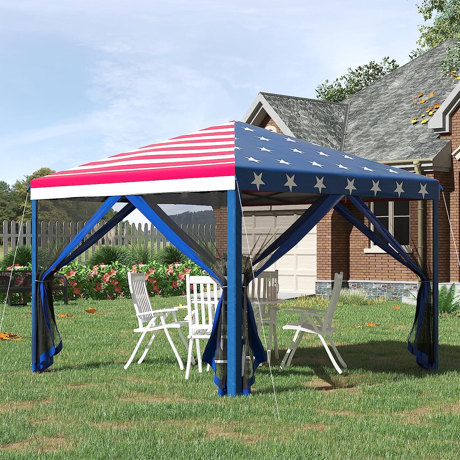 Outsunny 10' x 20' Pop Up Canopy Tent with Netting, Heavy Duty Large Party Tent, Instant Sun Shelter with Carry Bag for Backyard Garden Patio, American Flag