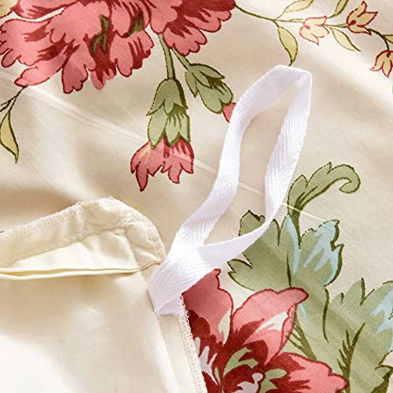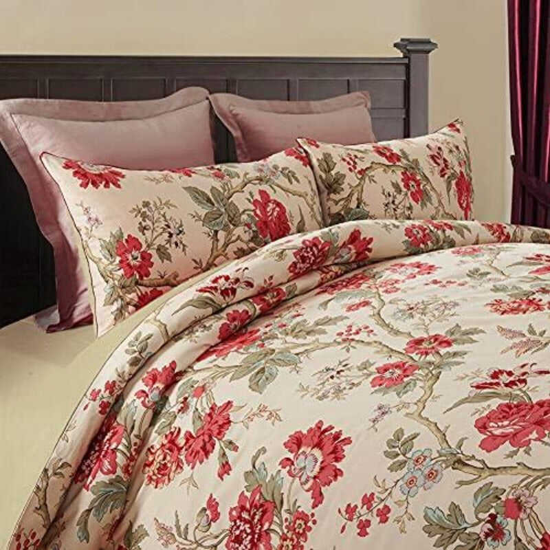 Garden Style 3 Pieces Red Flower Leaf Pattern Duvet Cover Set Cotton Reversible Comforter Cover Set Easy Care, Soft, Durable