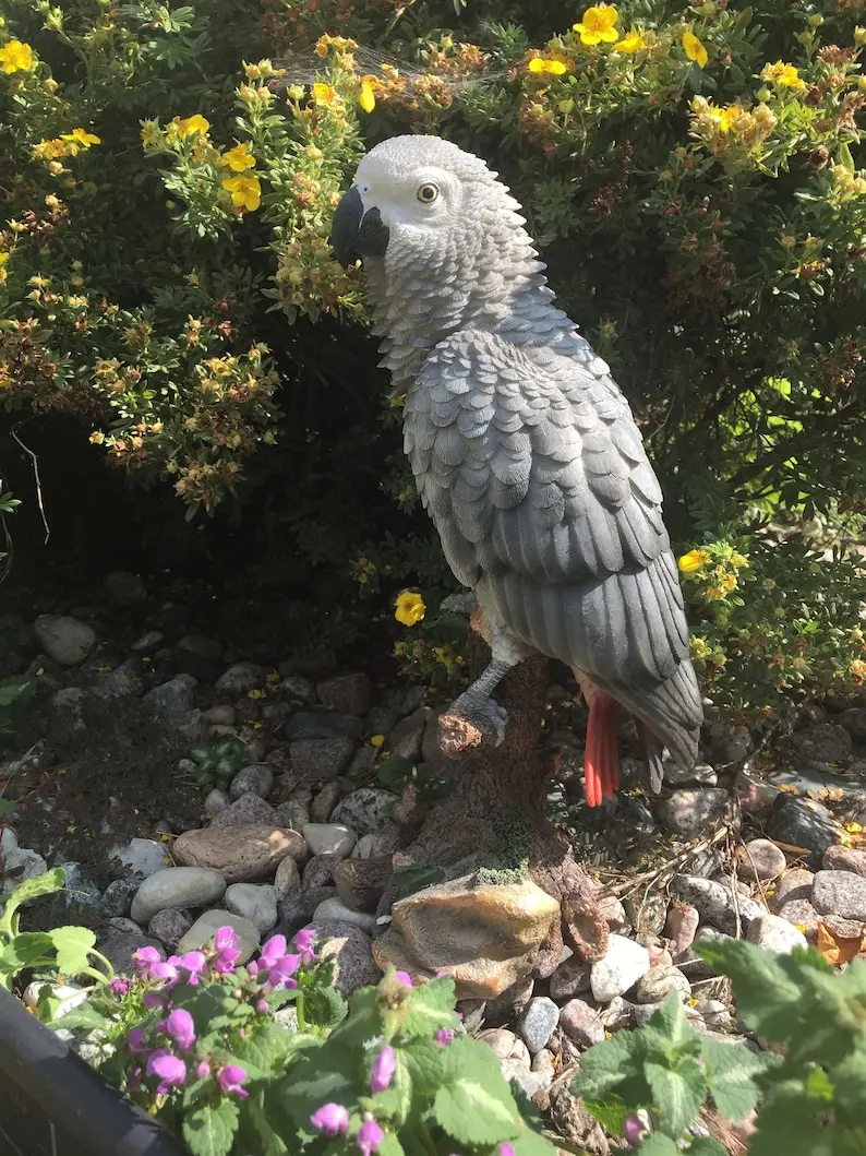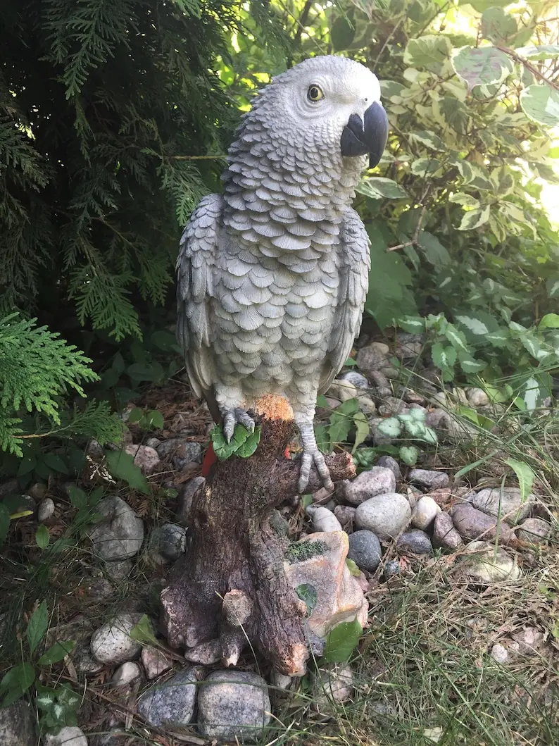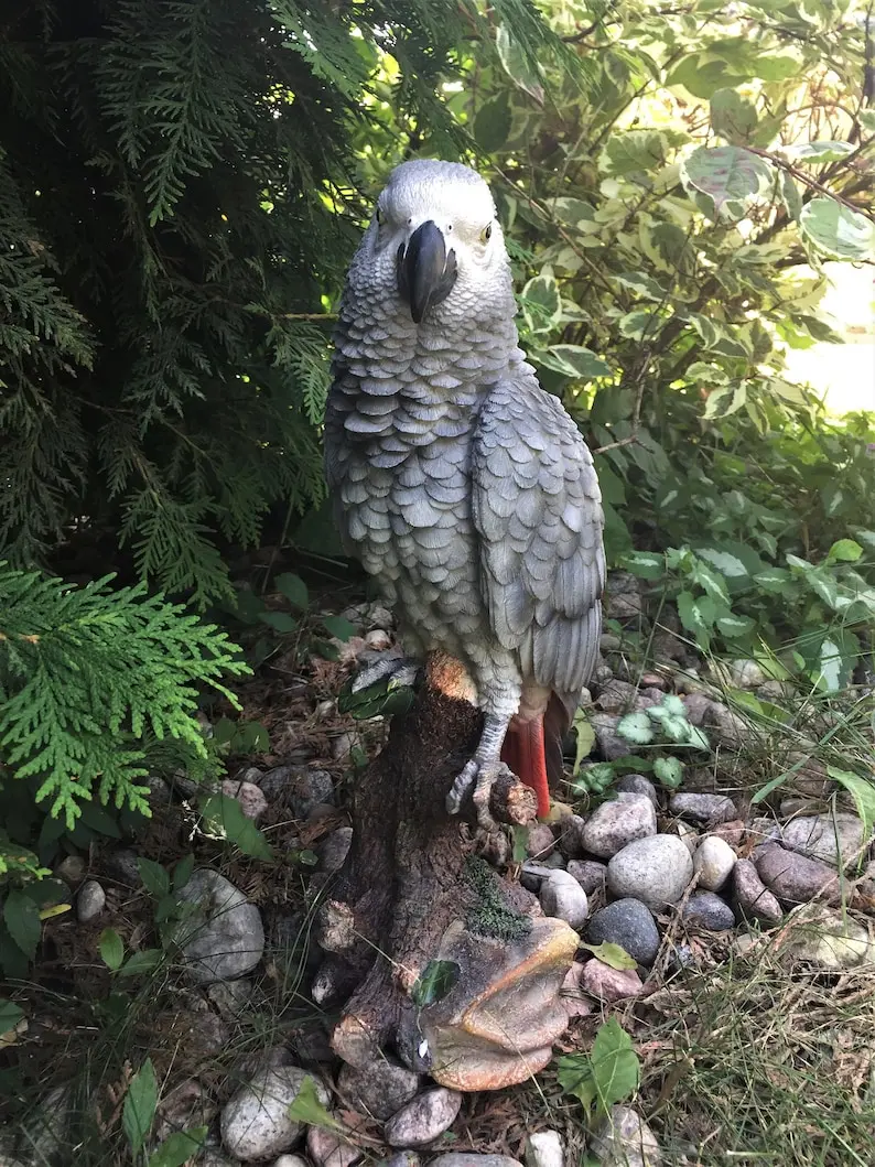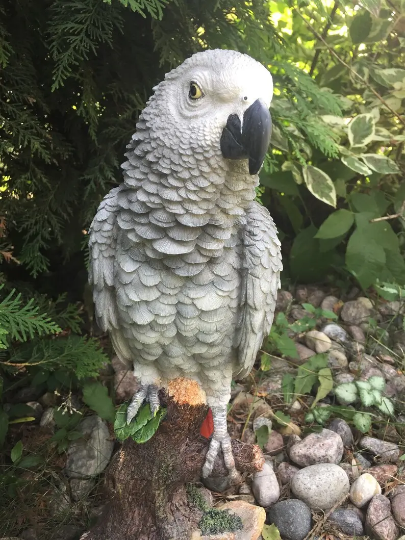 Grey Gabon Parrot Bird Figurine Garden Figurine 15 in.H Statue, African Parrot, Tropical Birds, Indoor Outdoor Figurine,Congo Grey Parrot