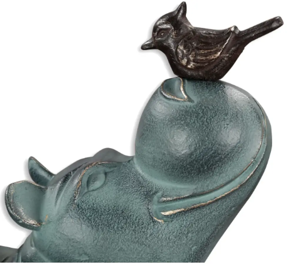 Crafted from aluminum, this incredible happy Hippo features a bird resting on the mouth of a very content hippo. Perfect for decor, this sturdy, elegant yard sculpture looks great in any garden, lawn, patio, or porch. This is a design that celebrates the natural beauty of the great outdoors.