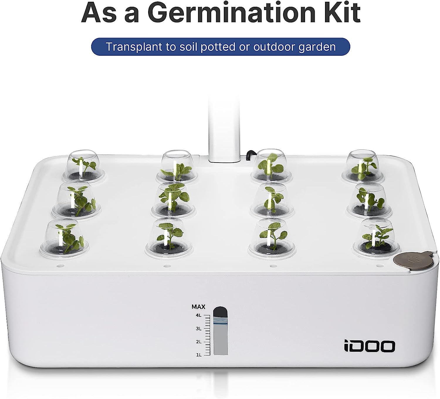 - Growing 12 Plants at Once, Up to 11.02" in Tall: The height of the lighting part of the hydroponics growing system can be adjusted for plants at different growth stages. Grow 12 plants at a time, works up to 11.02 inches.