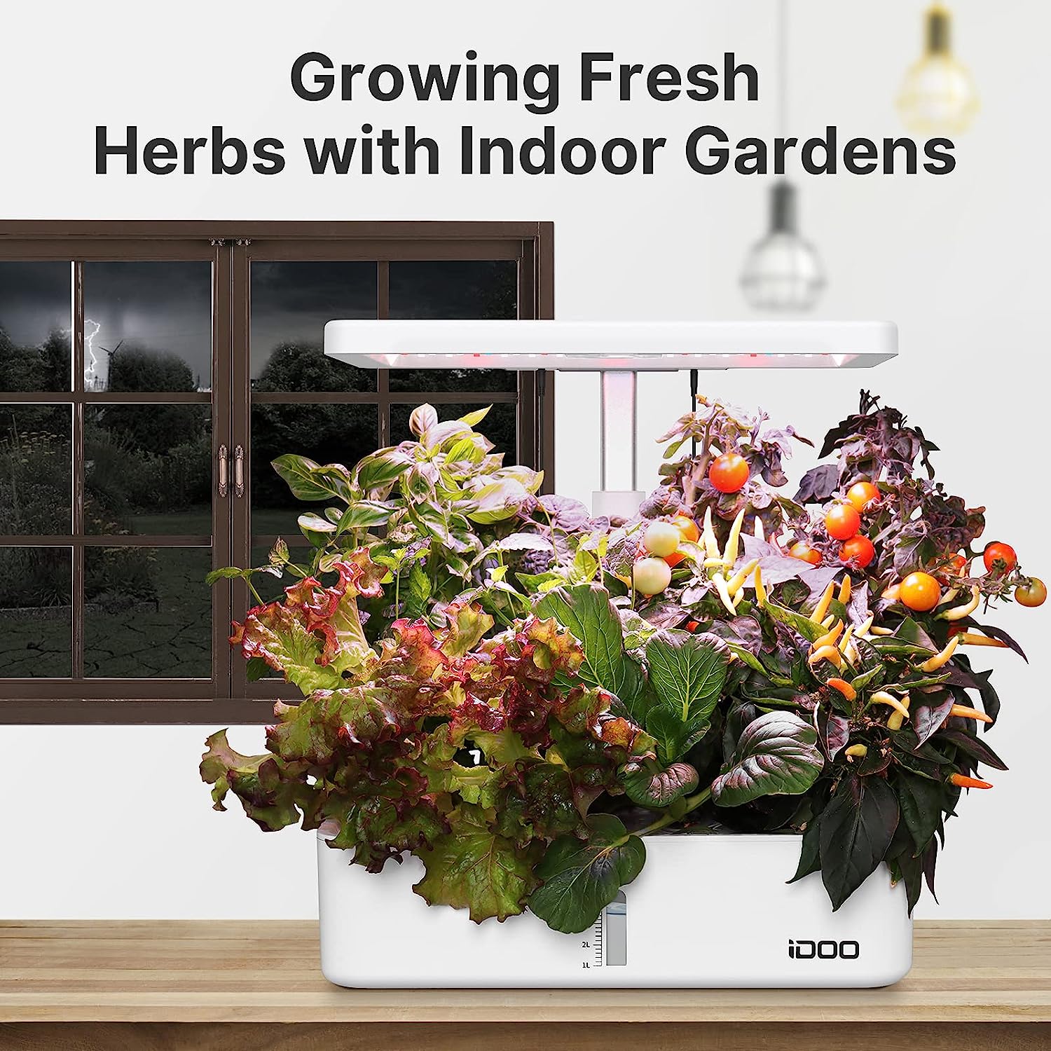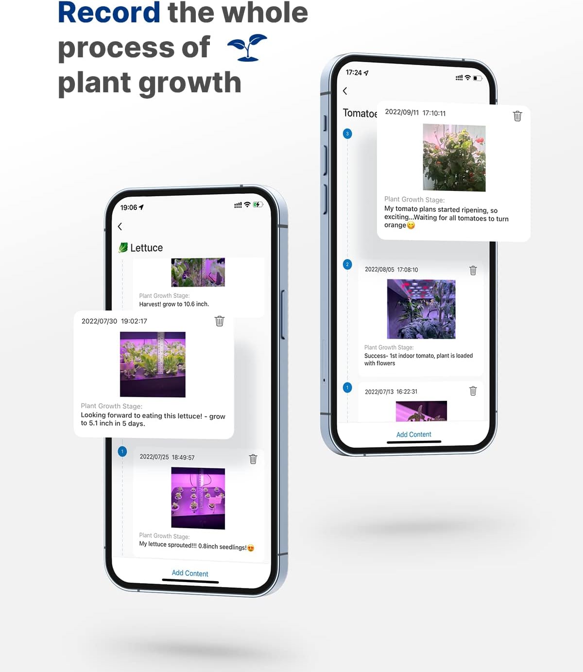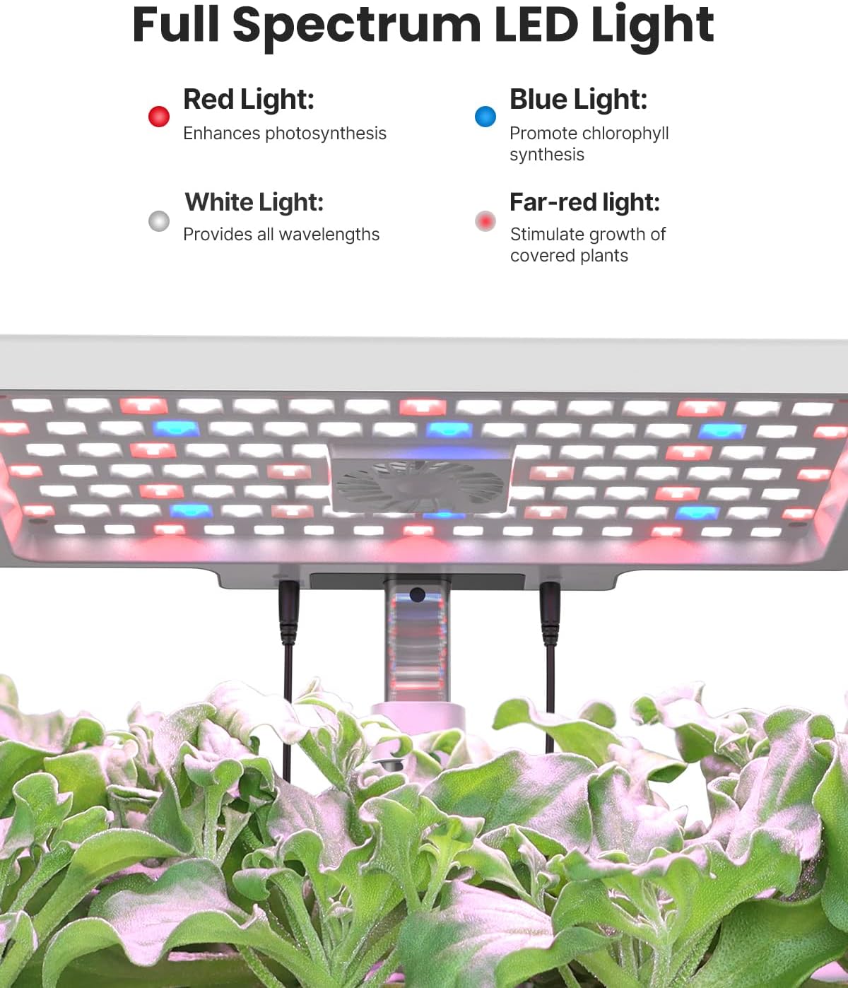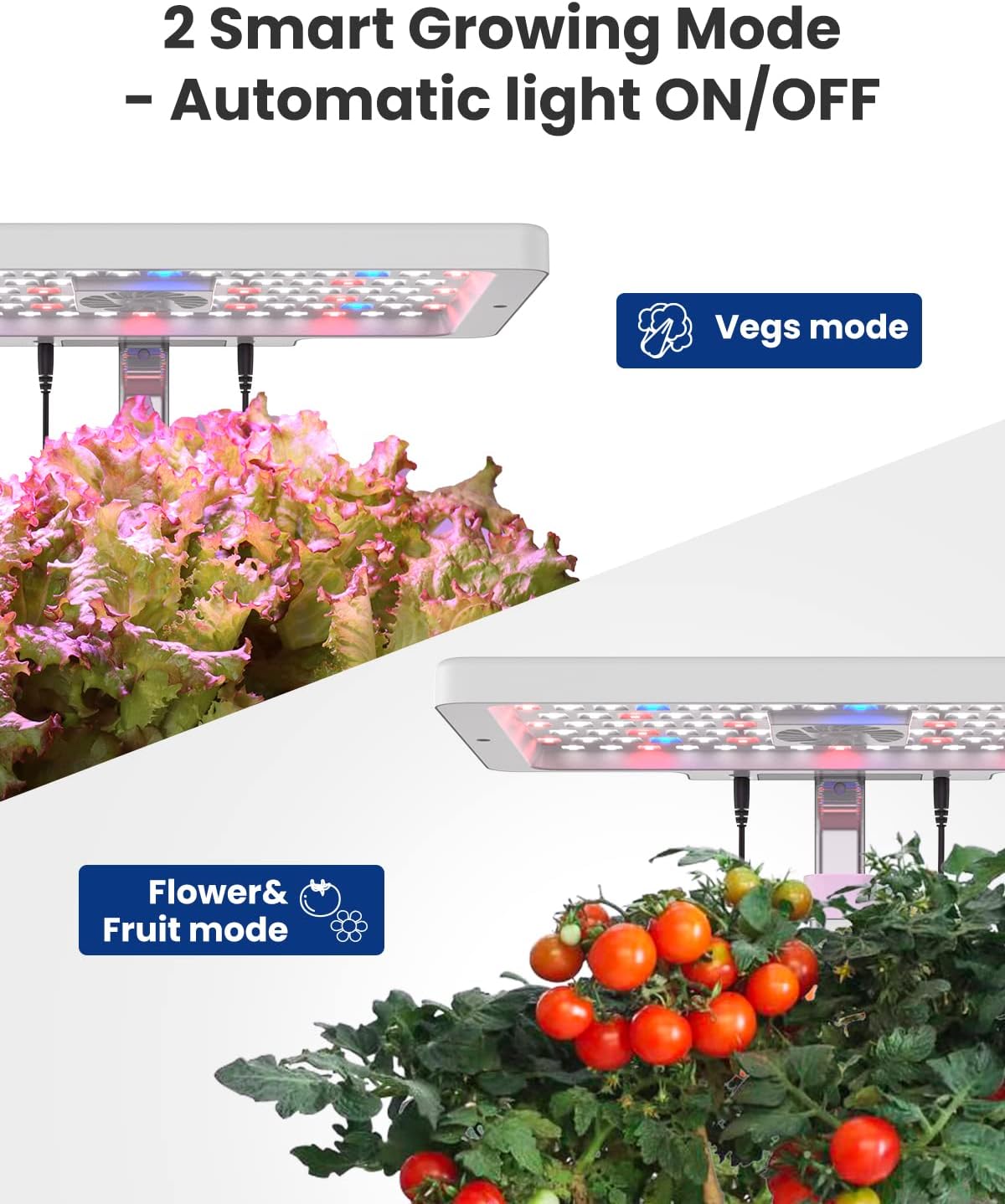 - 2 Growing Modes: 22-Watt LED light of hydroponics growing system turns on/off automatically, simulate the sunlight spectrum, promoting plants' photosynthesis in any weather. Vegetables Mode emits blue light, red light, far red light and white light; Flower/Fruit Mode emits red light, far red light and white light.