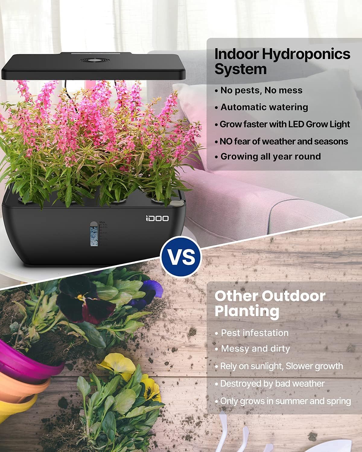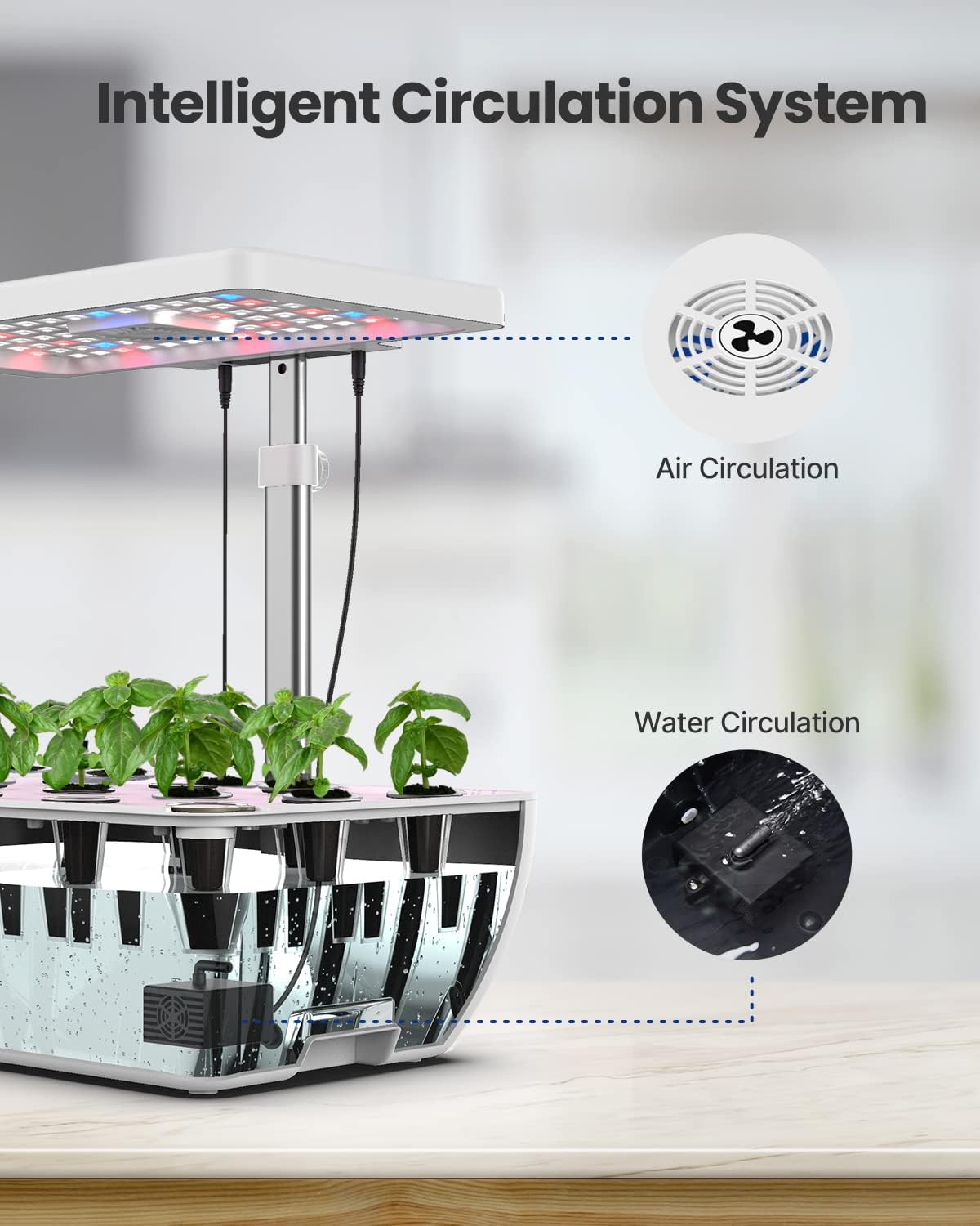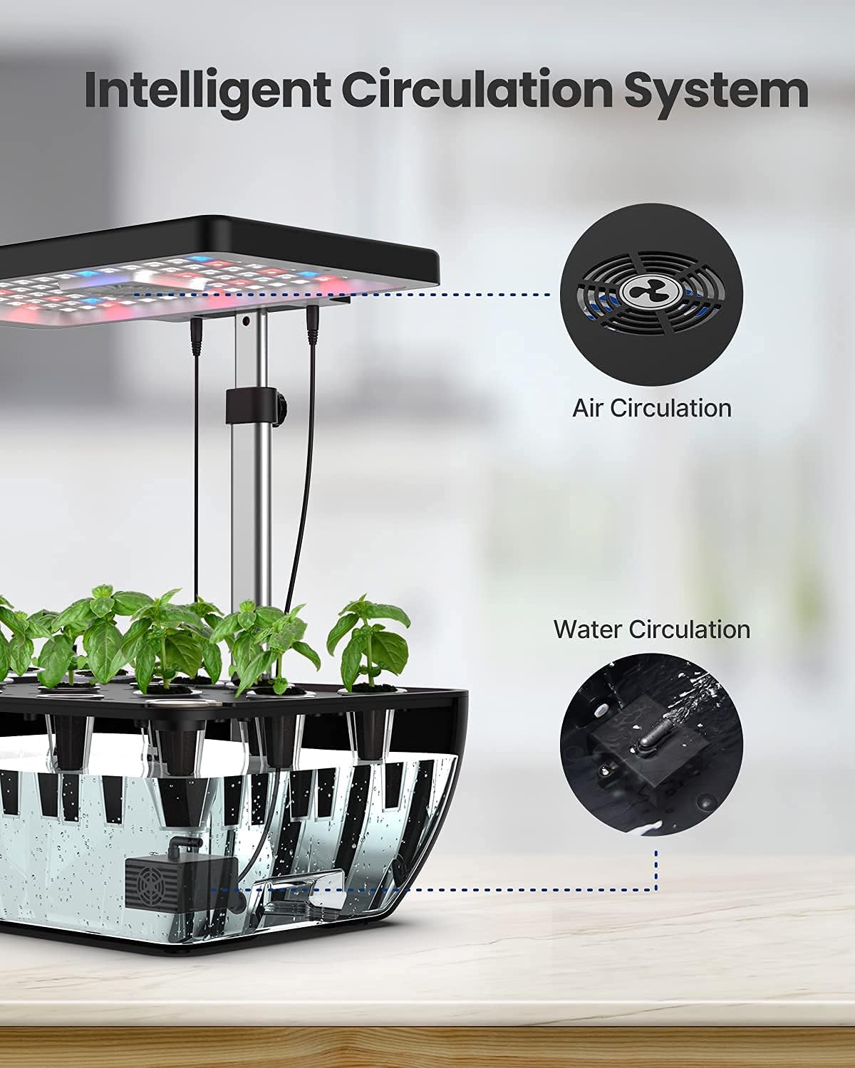 - 20% Faster than Soil Planting: The integrated low noise pump of hydroponics growing system aerates the water to stimulate plant growth while the upper fan simulates the outside breeze at timed intervals. Grow your plants 20% faster than the traditional soil planting method.