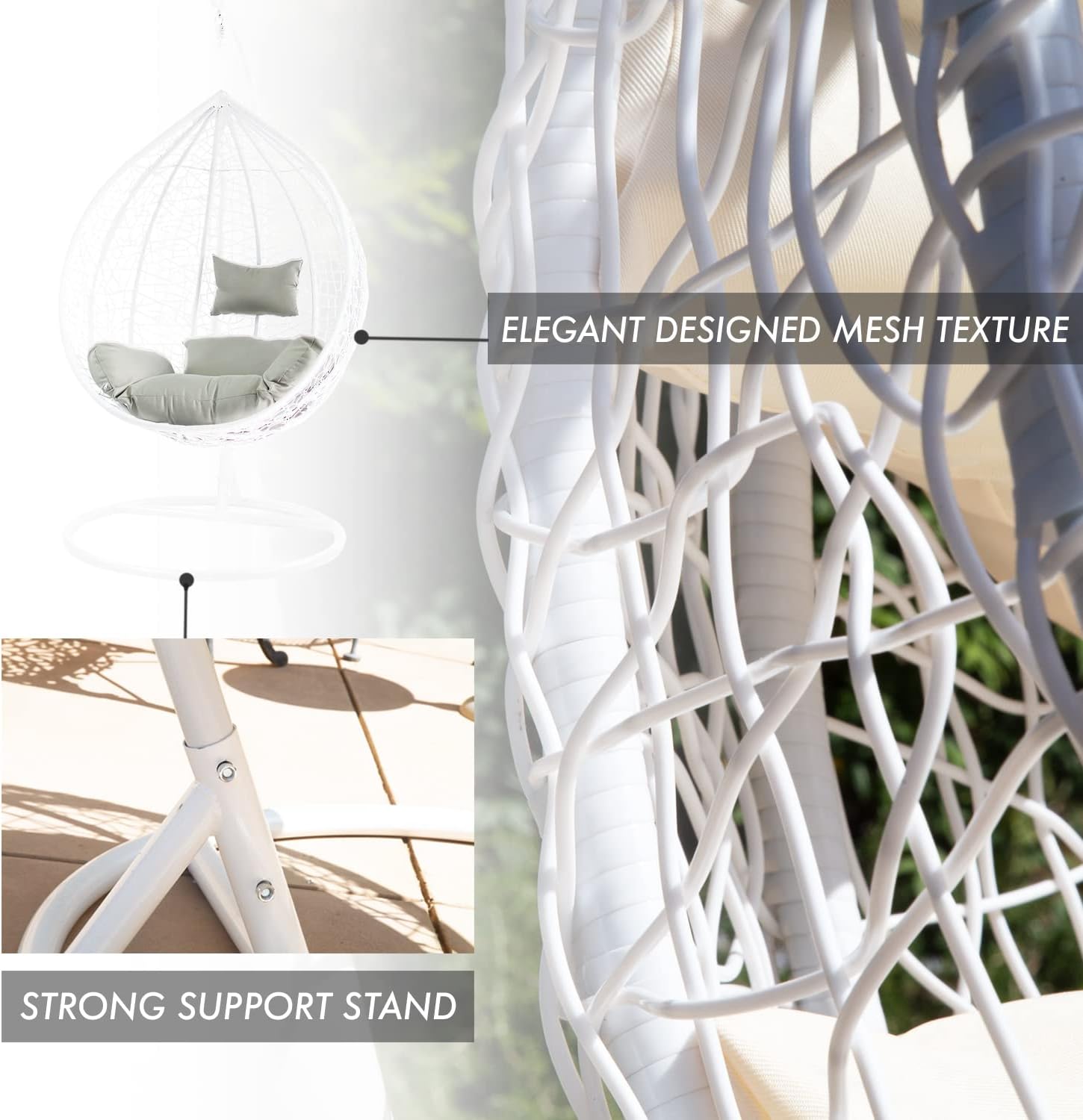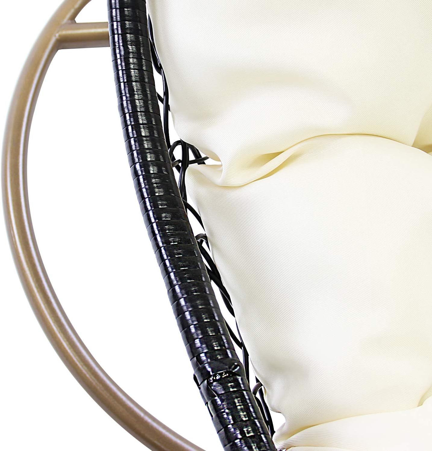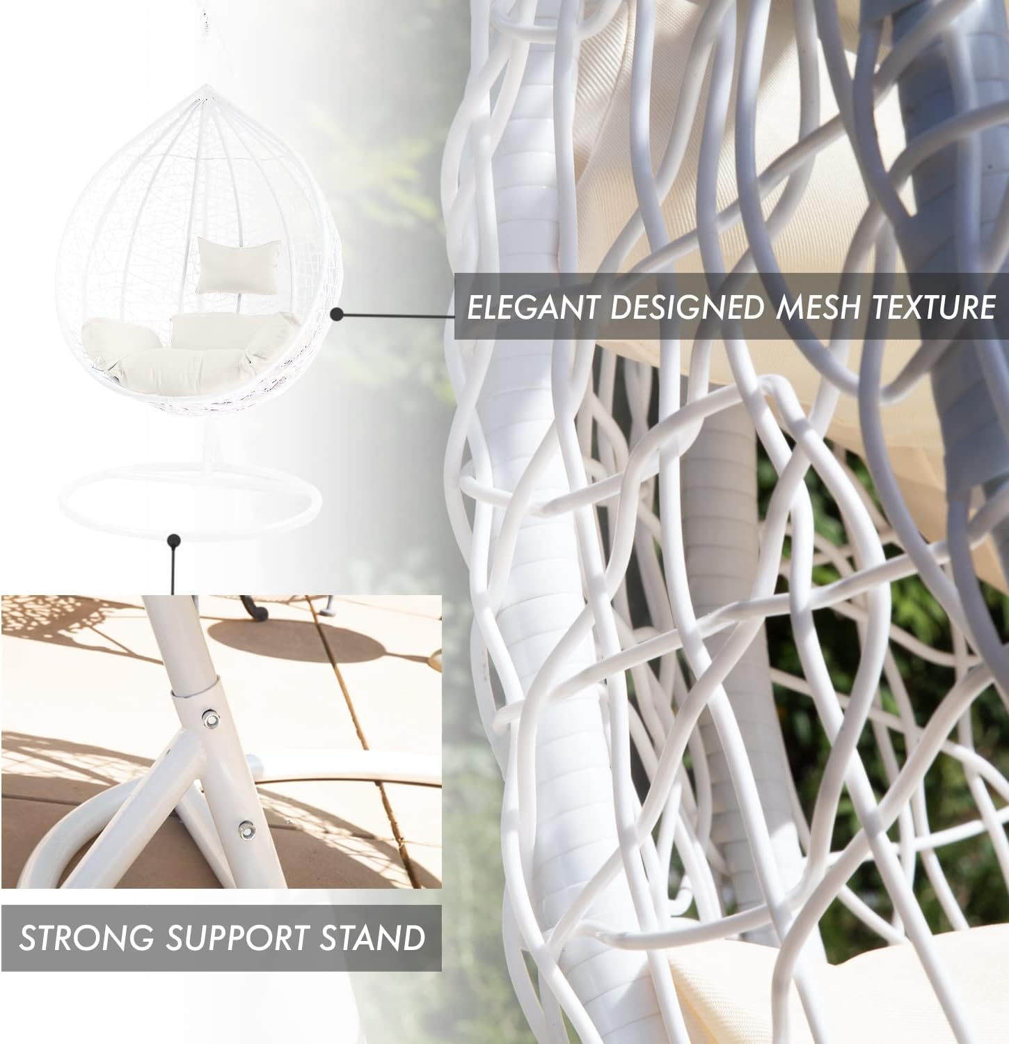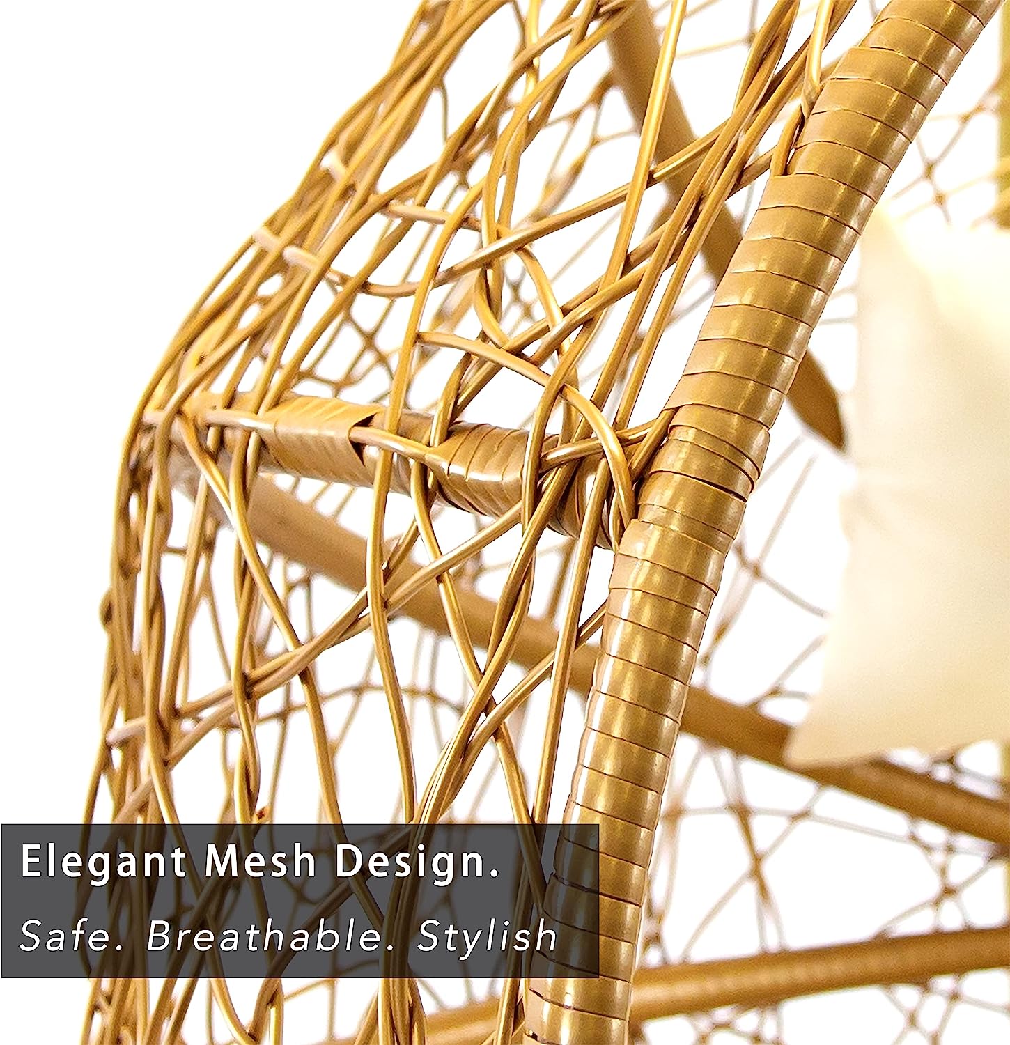 J.M.Deco Porch Swing Chair with Stand, Cushion & Pillow, Goldden Egg Rattan Wicker Swing Hanging Chair, Hammock Chair for Indoor, Outdoor, Garden, Backyard & Patio