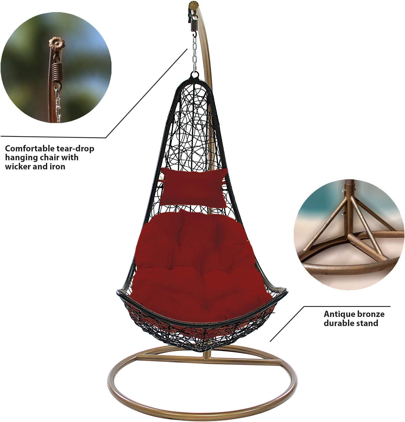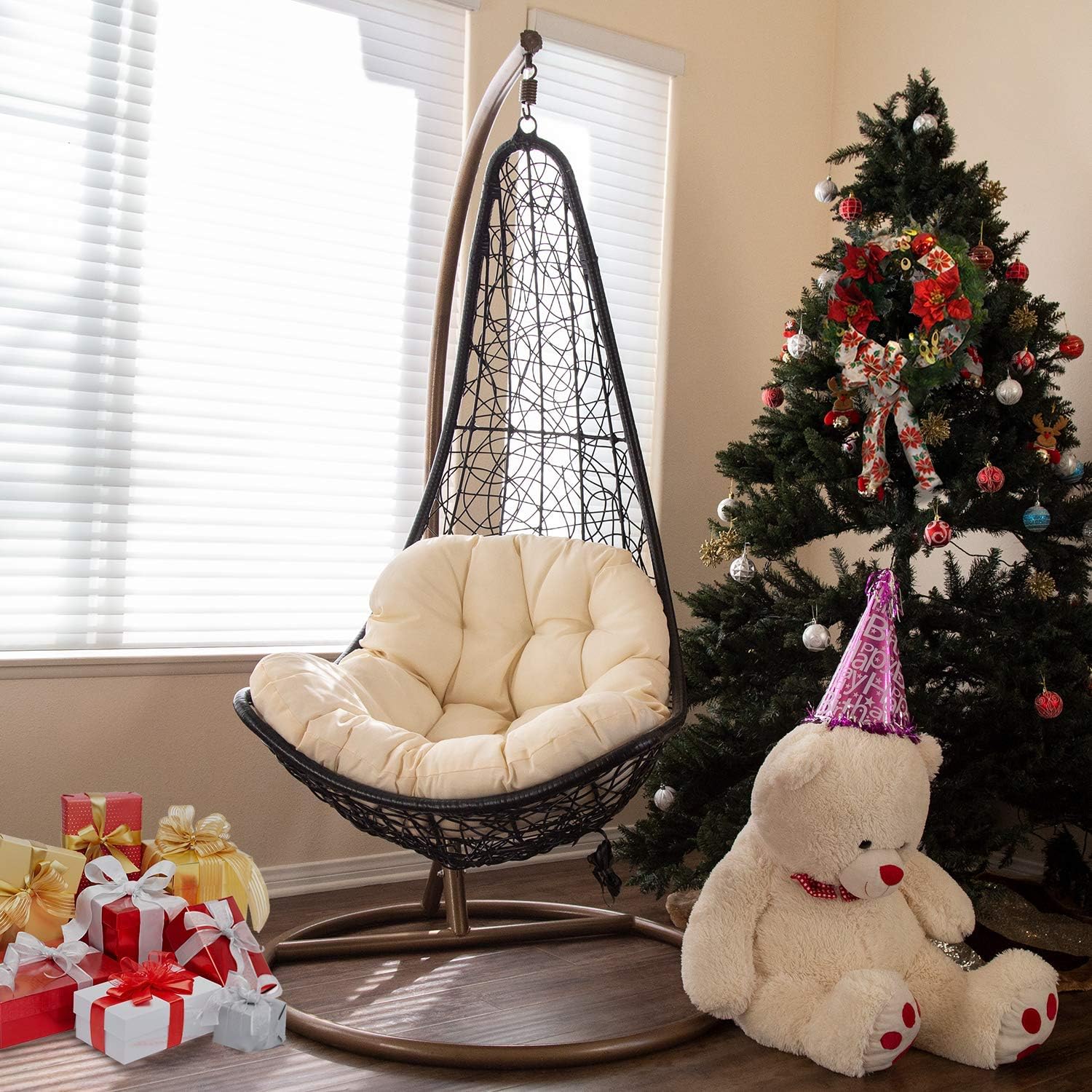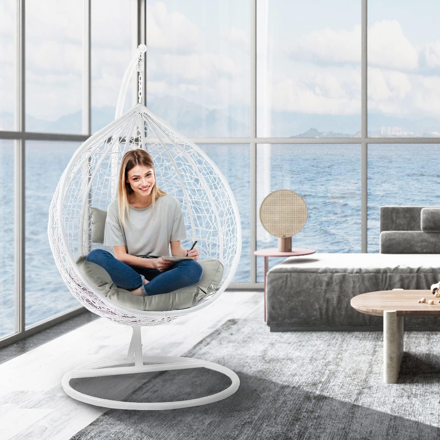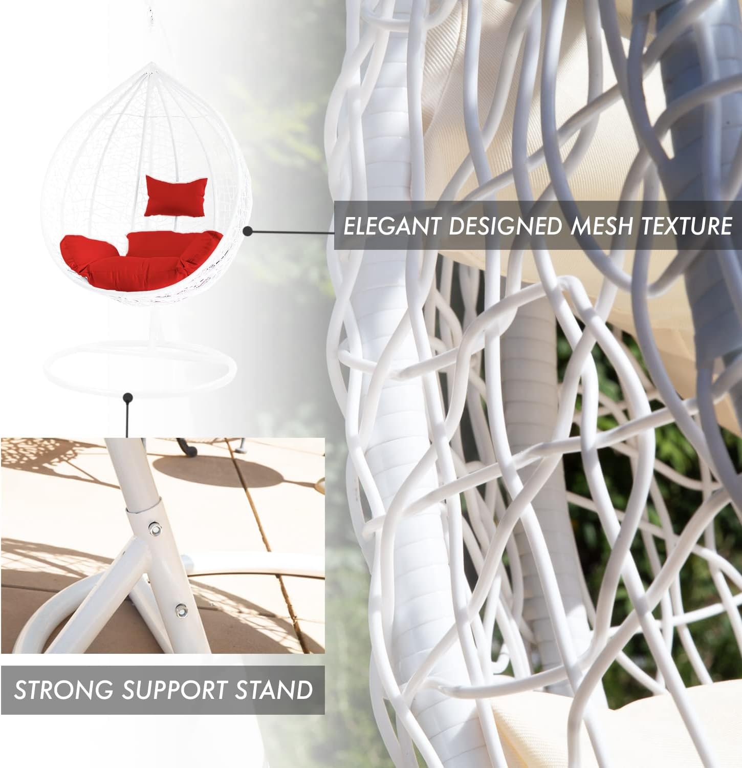 J.M.Deco Porch Swing Chair with Stand, Cushion & Pillow, Goldden Egg Rattan Wicker Swing Hanging Chair, Hammock Chair for Indoor, Outdoor, Garden, Backyard & Patio