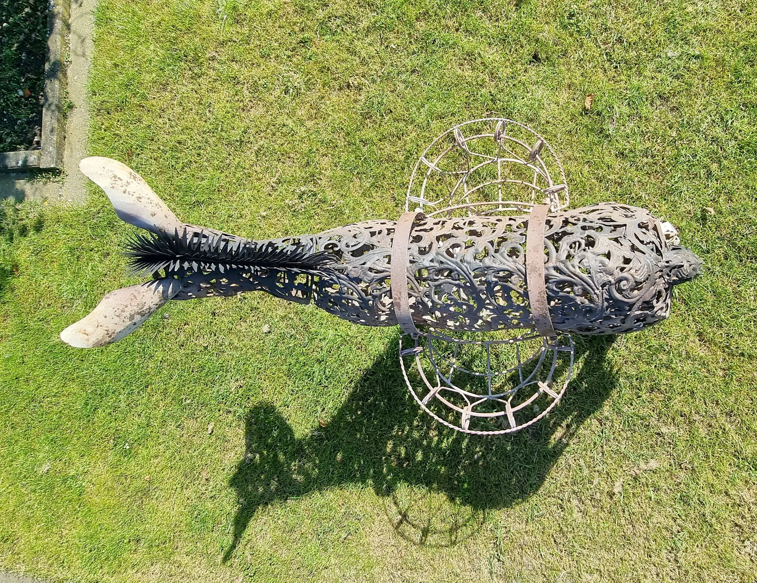Large iron donkey with 2 flower baskets - donkey with baskets - unique garden decoration