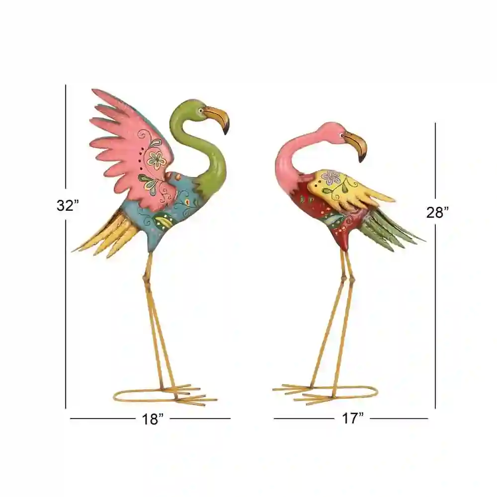 Multicolor Iron Coastal Flamingo Bird Garden Sculptures (Set of 2)