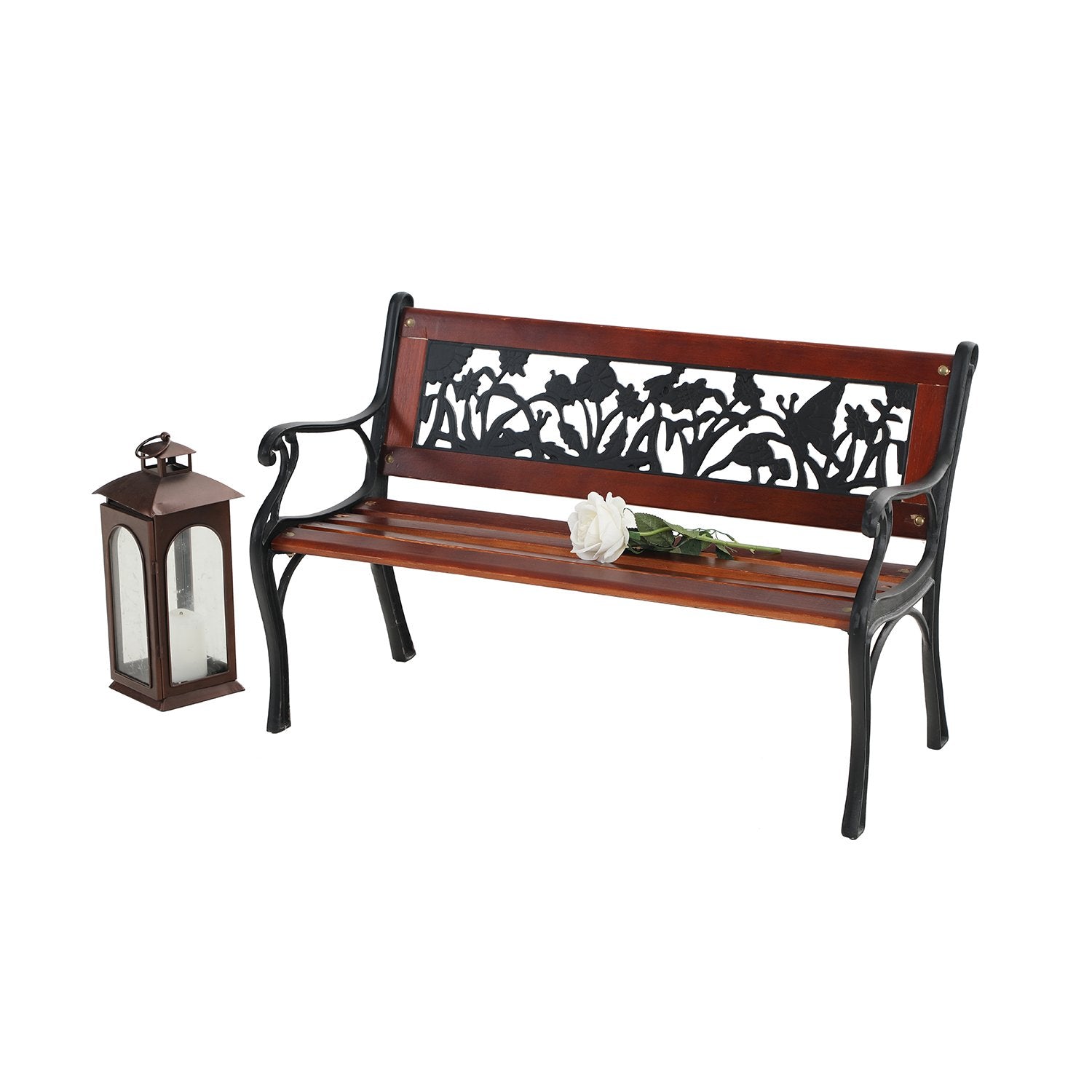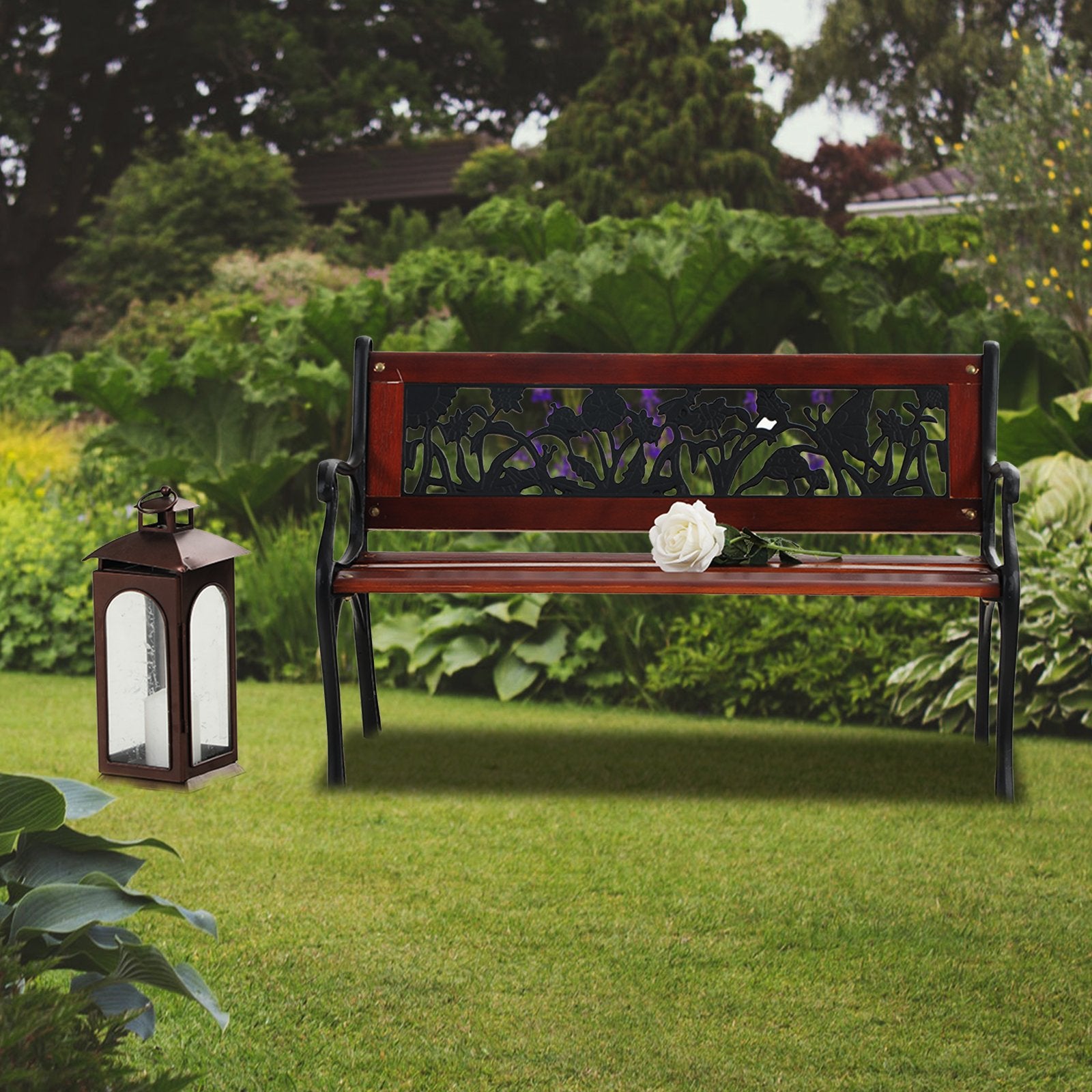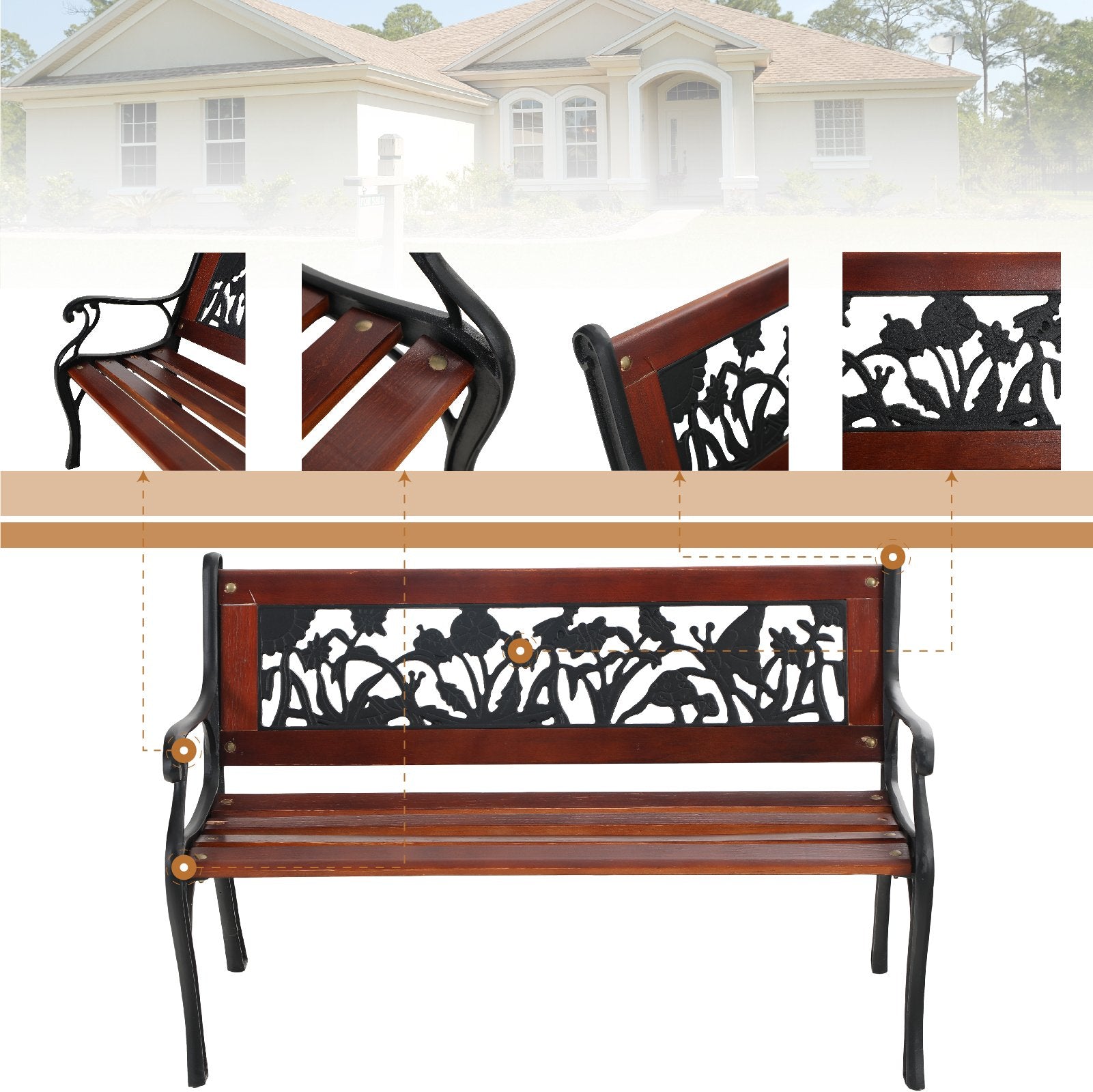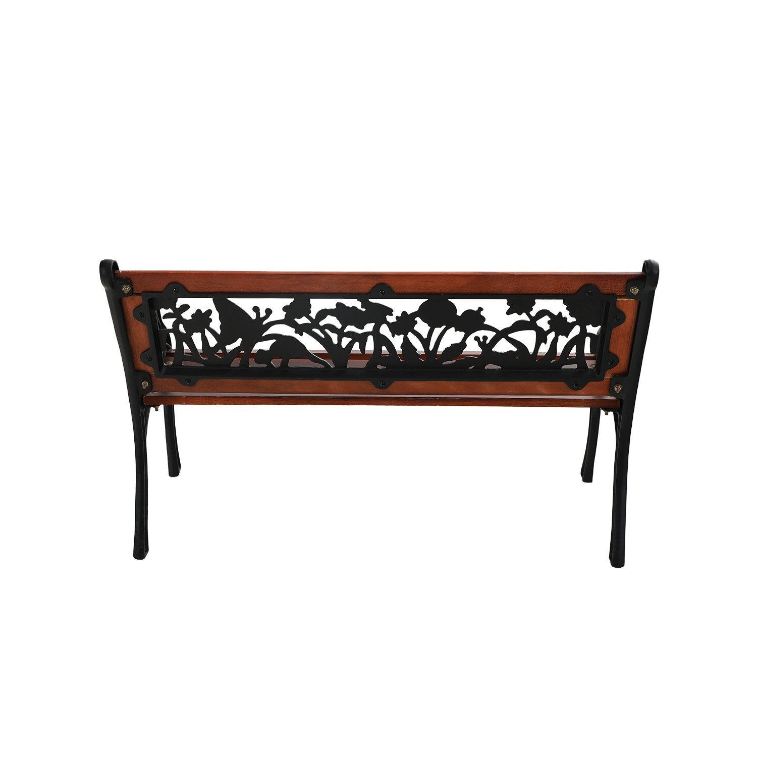 33" Outdoor Kids Sized Garden Metal Bench with Wood Seating