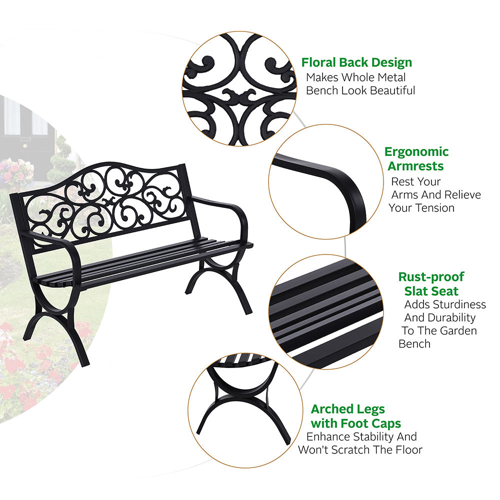 50 Inch Garden Patio Bench Cast Iron Steel Frame with Phalaenopsis Pattern
