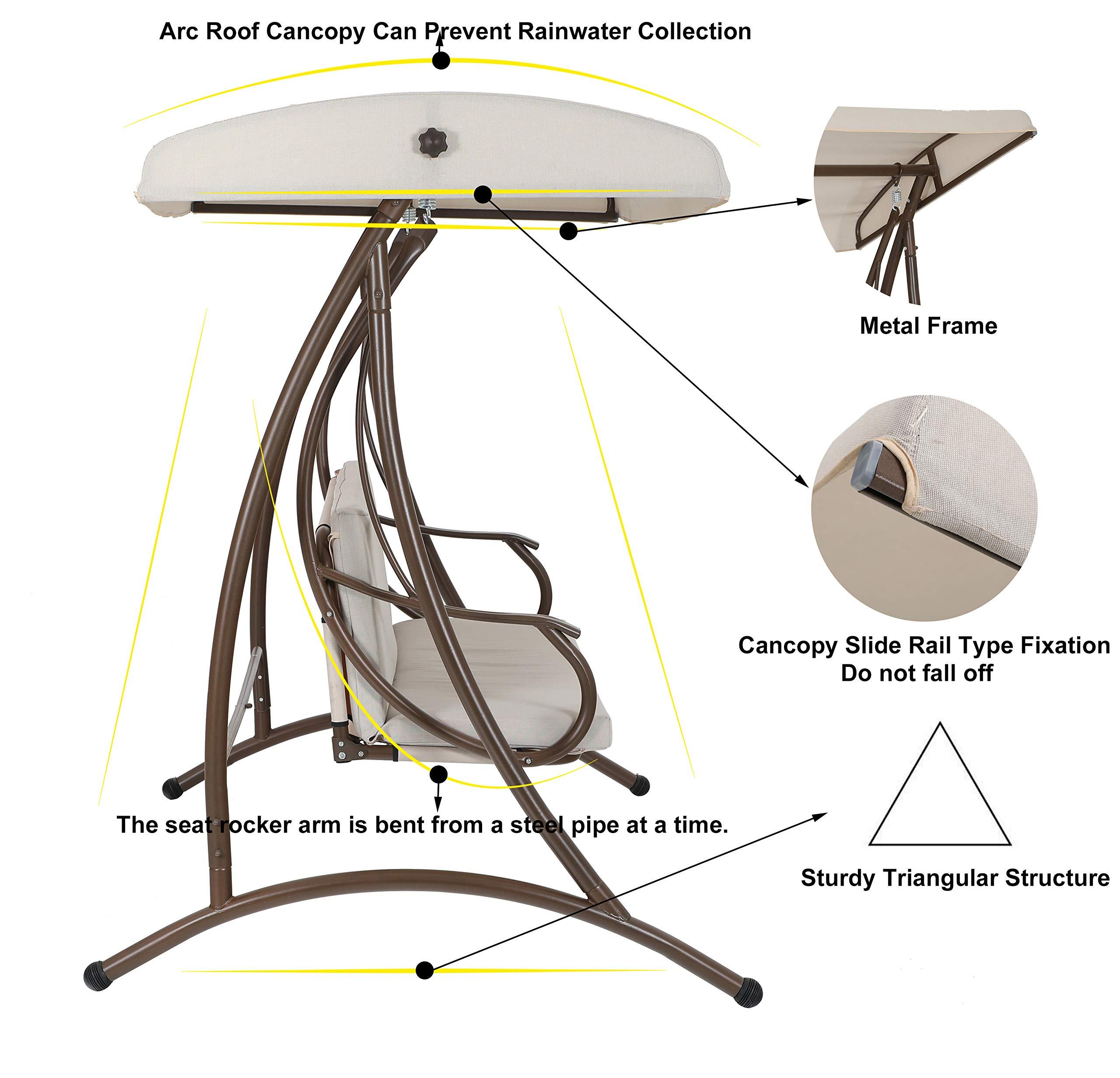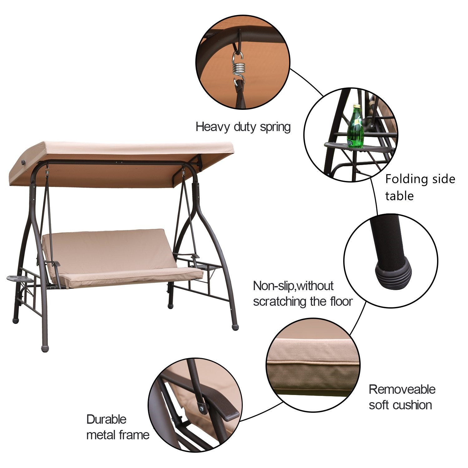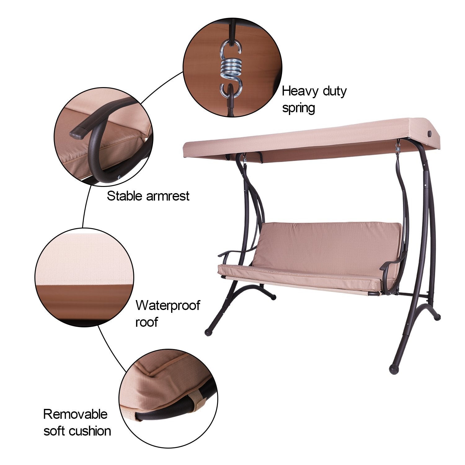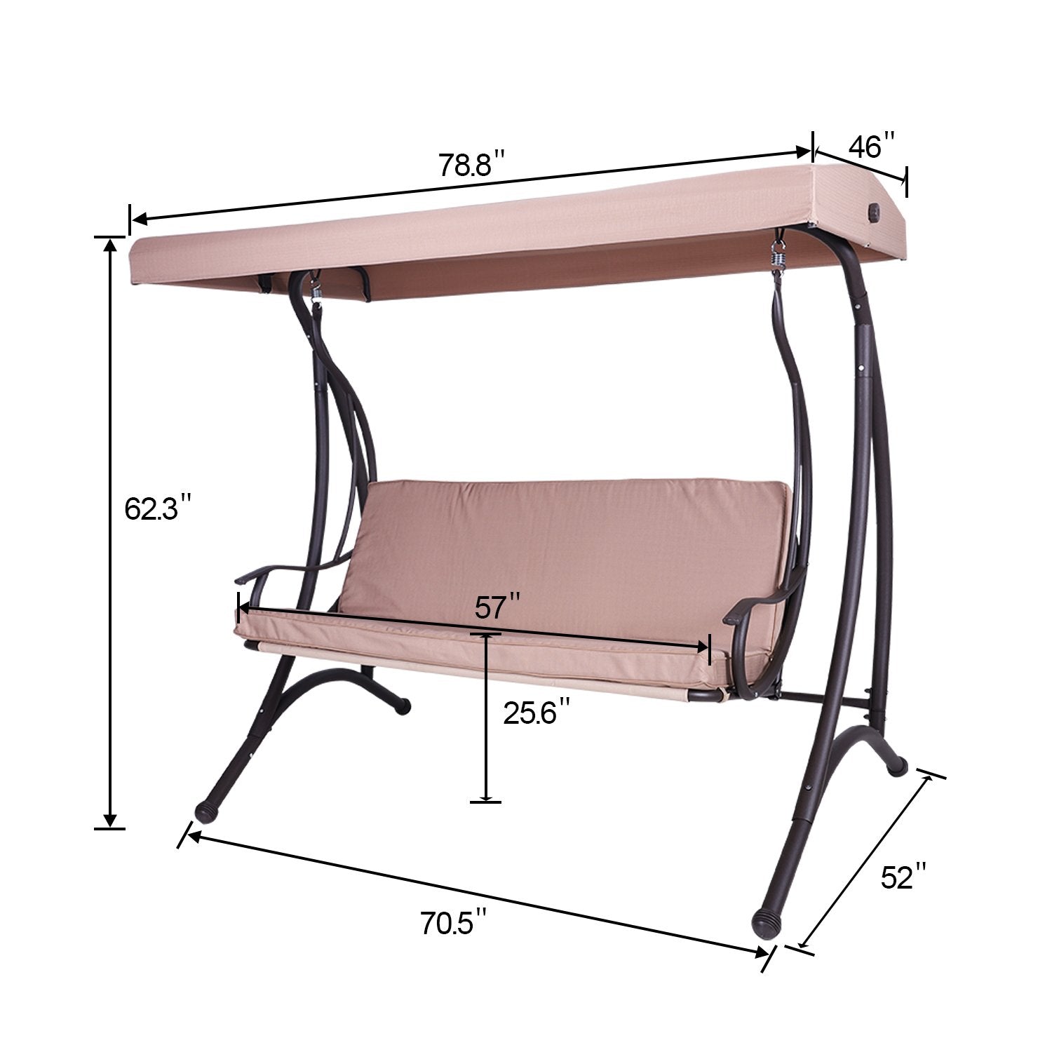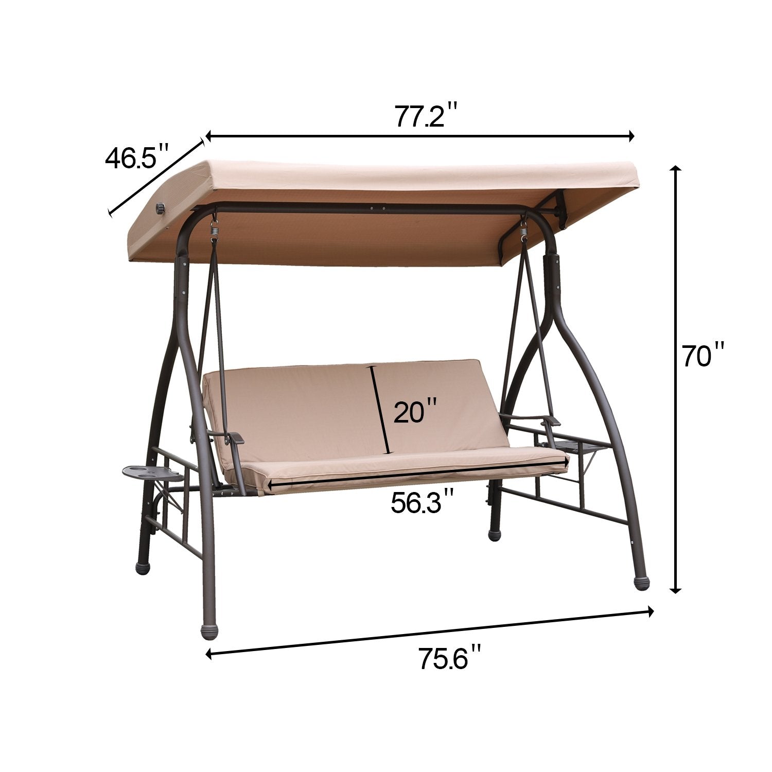 Outdoor Patio 3 Person Swing Chair for Porch, Garden, Backyard