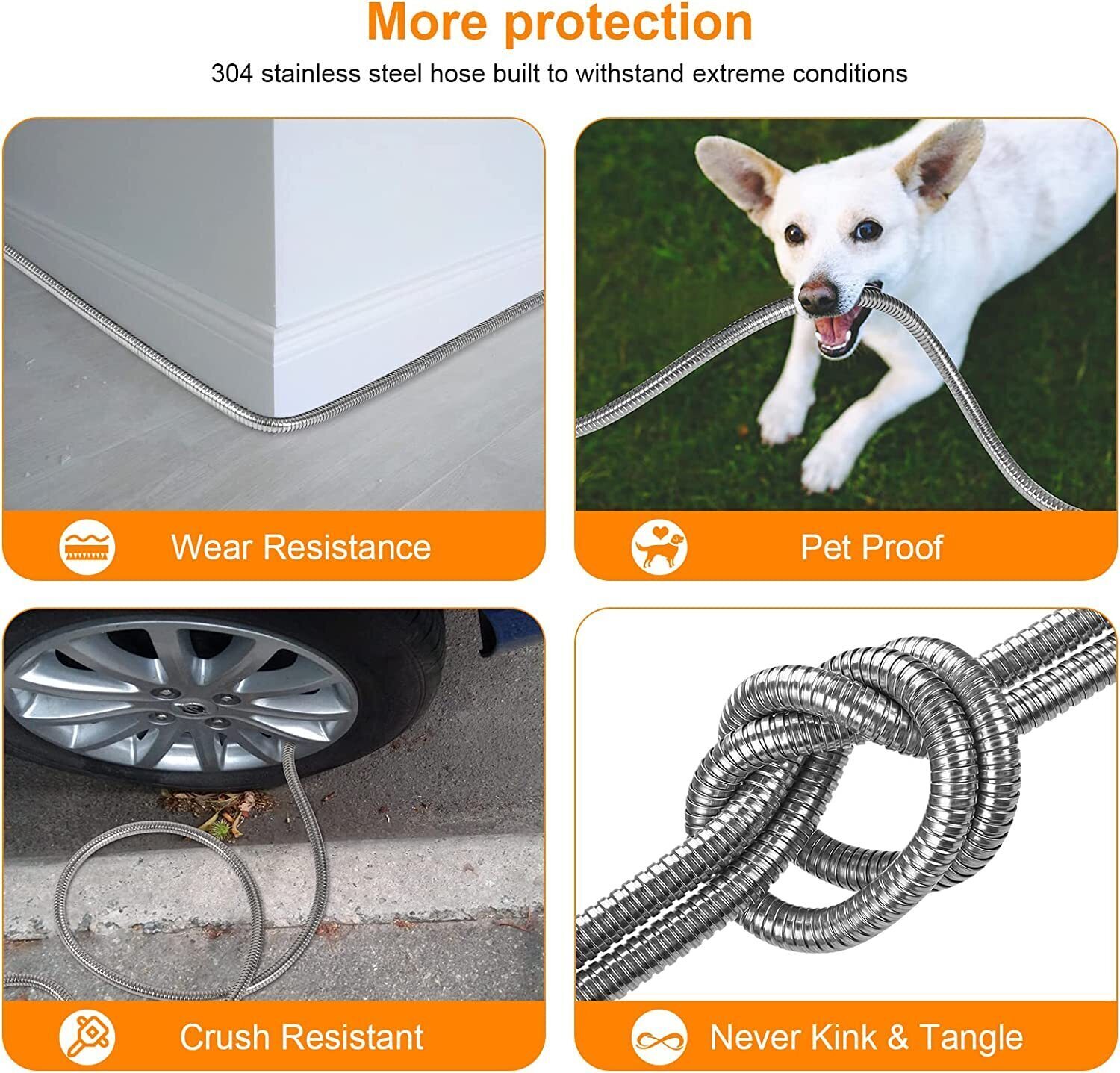 Stainless Steel Garden Hose 25ft - Water Hose 25ft, no Kink Explosion, no Bite