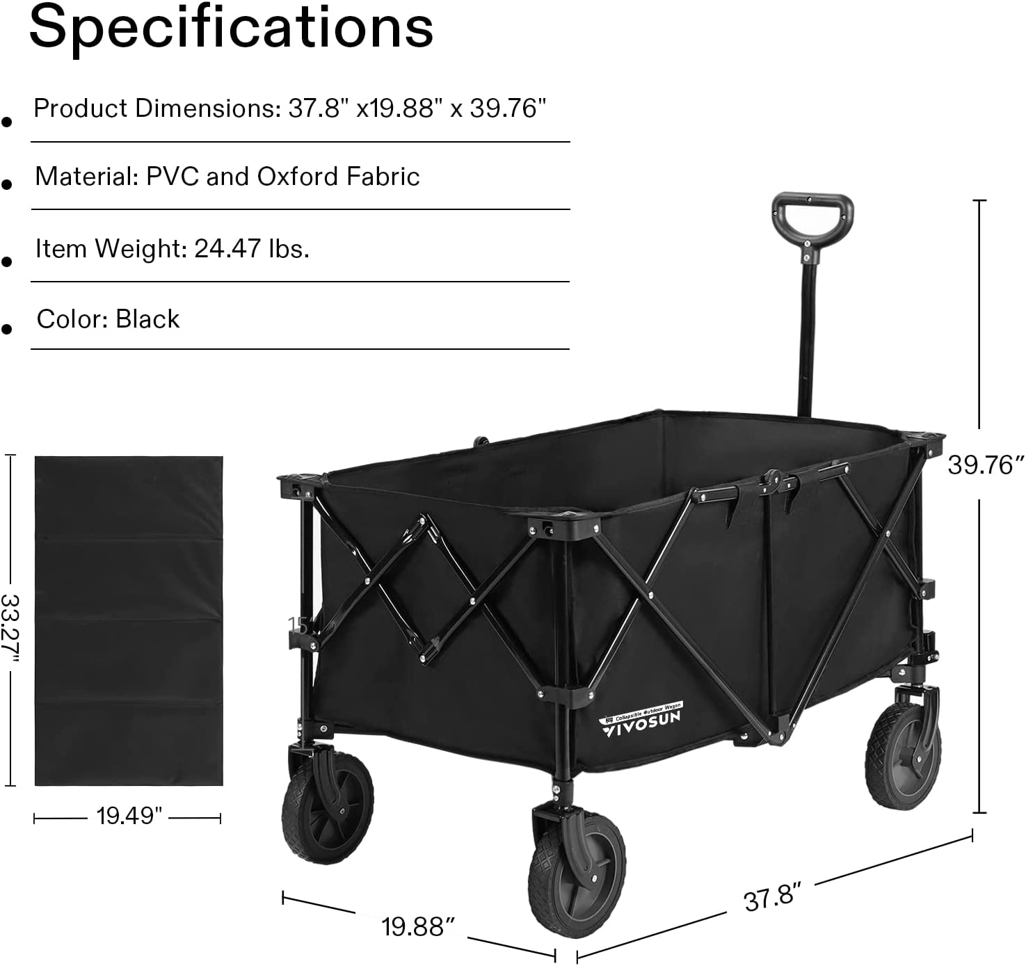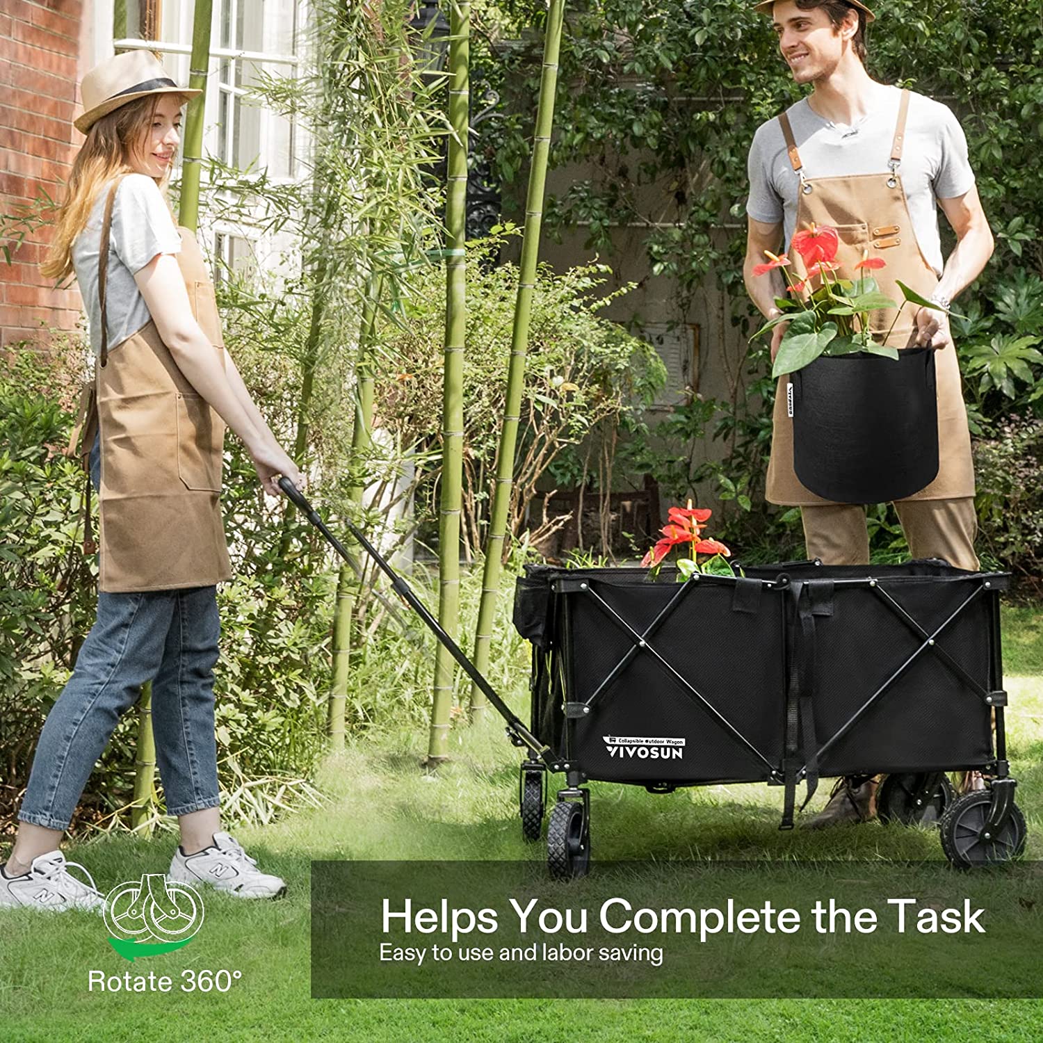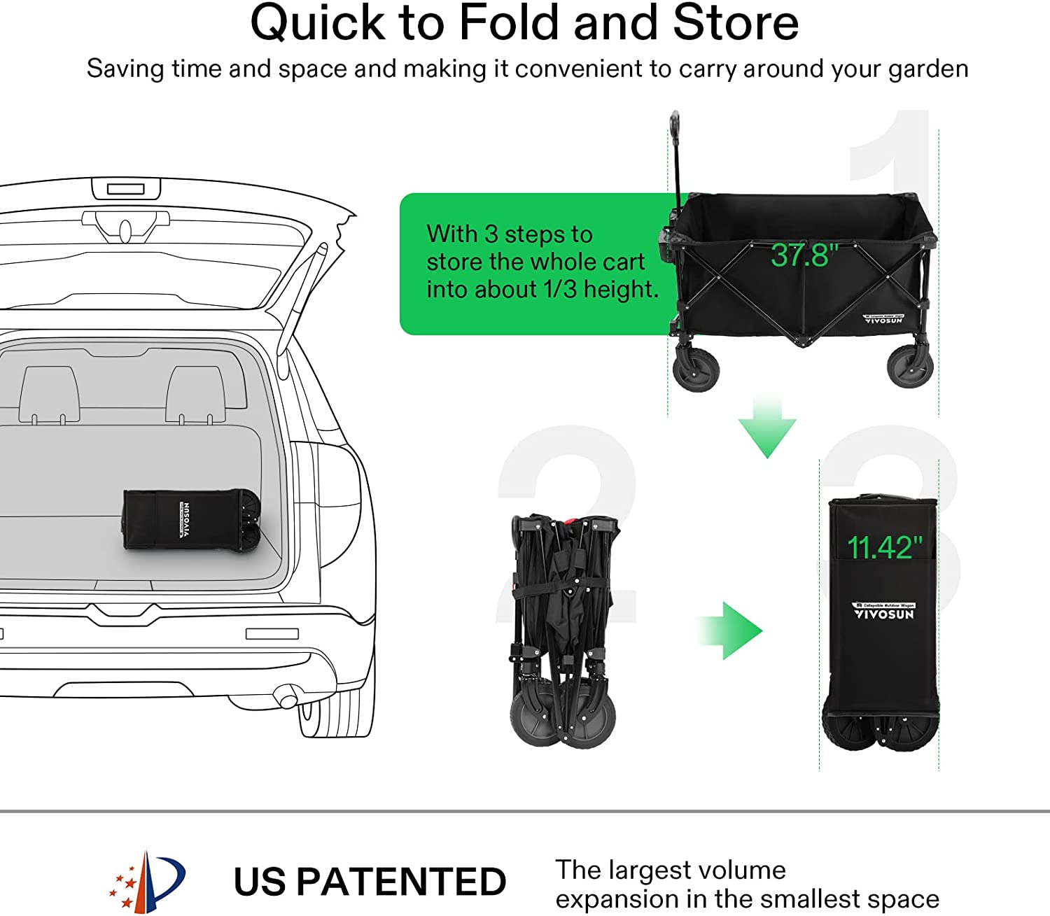 - Quick to Fold and Store: With a compact design, the VIVOSUN collapsible folding wagon folds to fit in one hand, saving time and space, and making it convenient to carry around your garden
