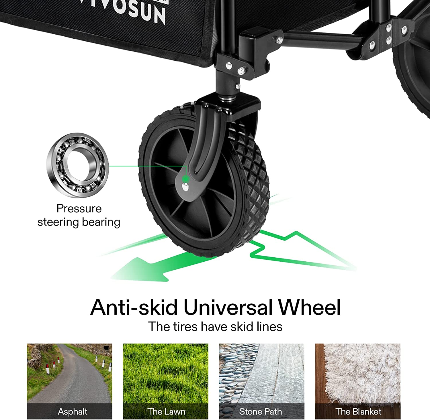VIVOSUN Heavy Duty Collapsible Folding Wagon Utility Outdoor Camping Garden Cart, Black