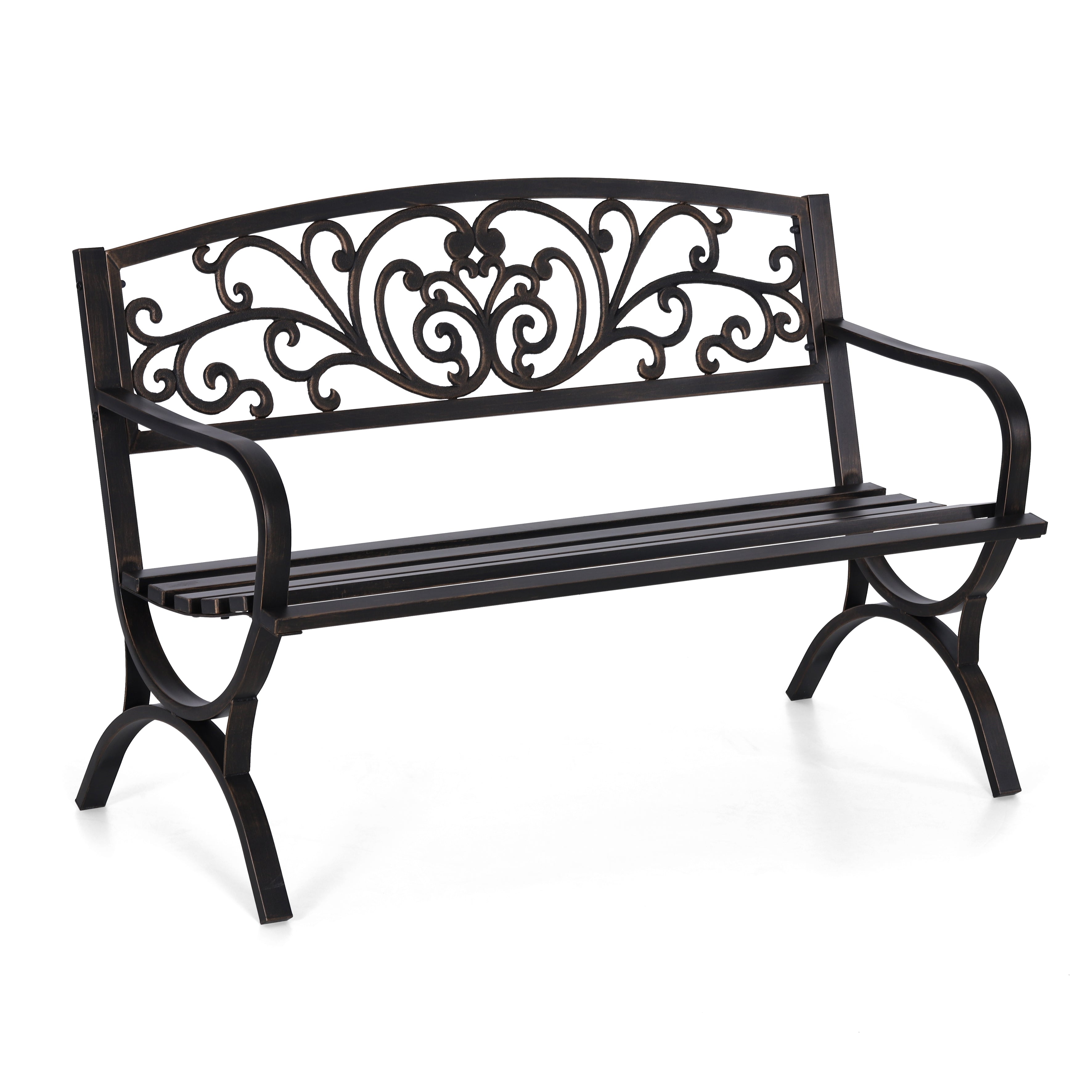 50 Inch Garden Outdoor Bench Cast Iron Steel Frame Apple Blossom Pattern