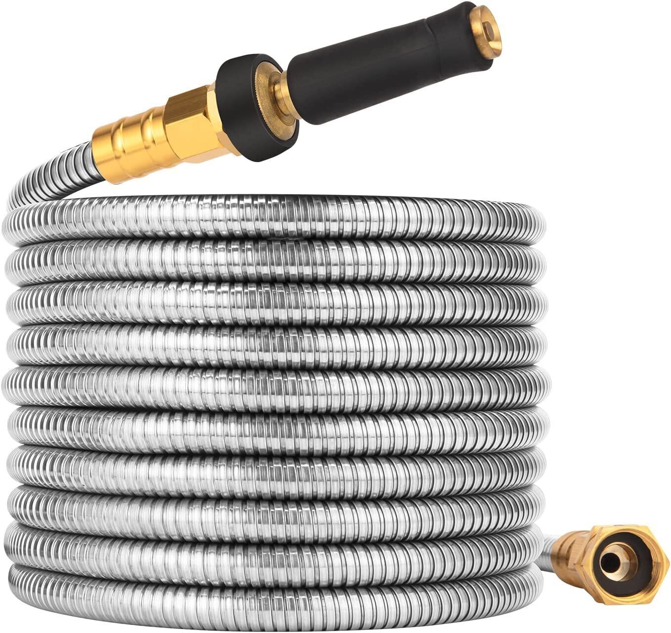 Stainless Steel Garden Hose 25ft - Water Hose 25ft, no Kink Explosion, no Bite