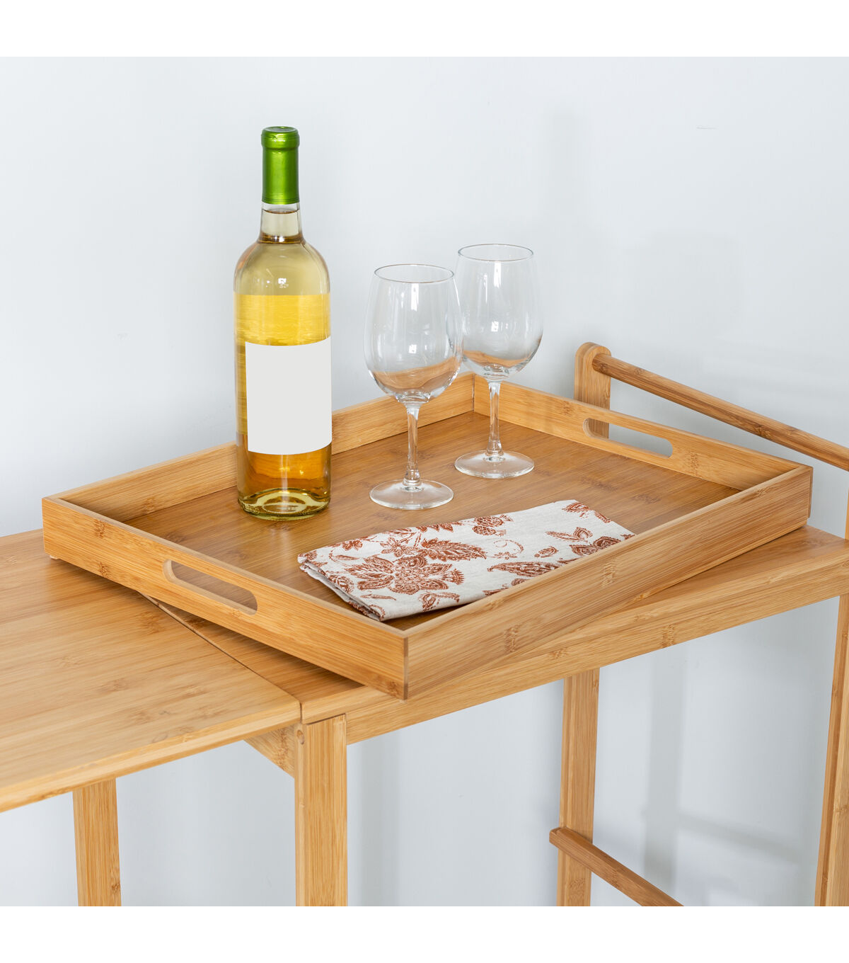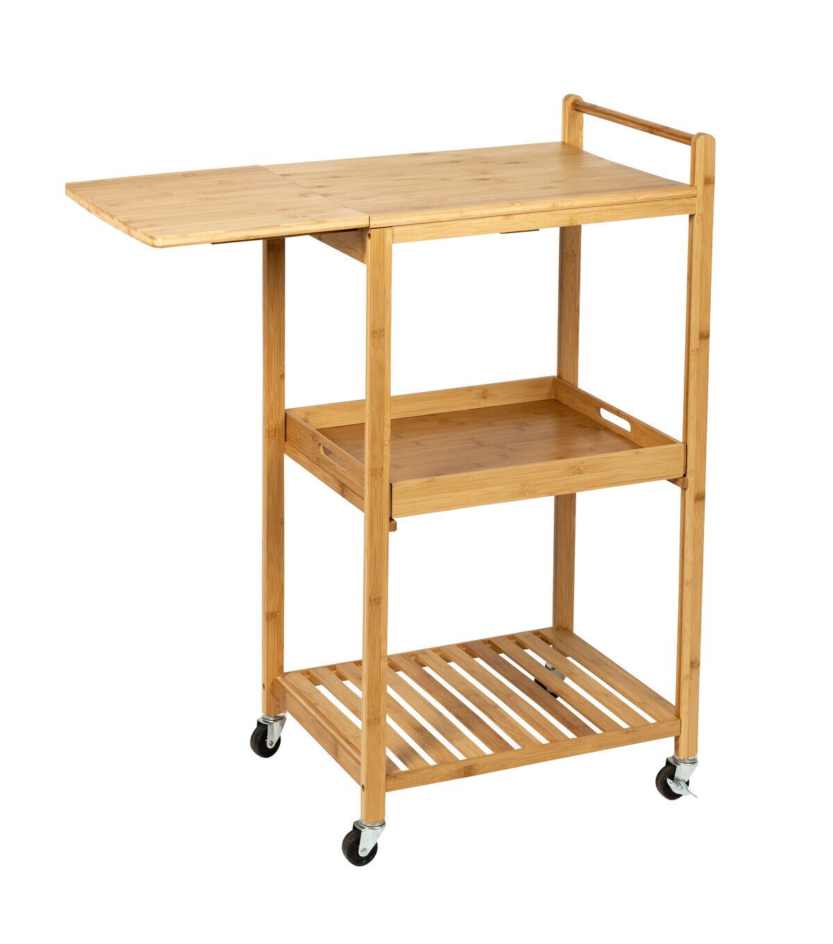 Honey Can Do 38" Natural Bamboo Kitchen Cart With Wheels & Drop Leaf