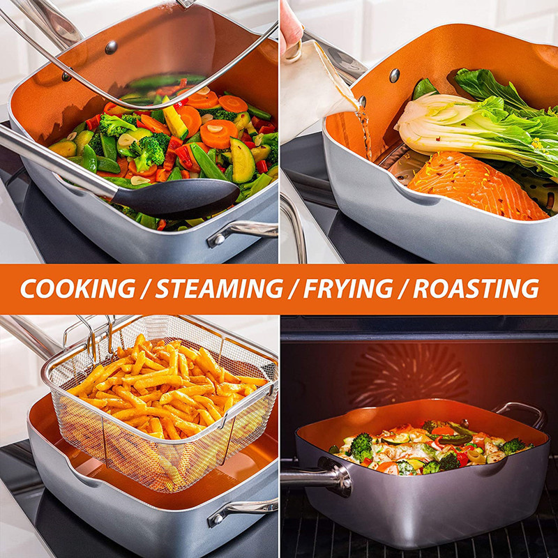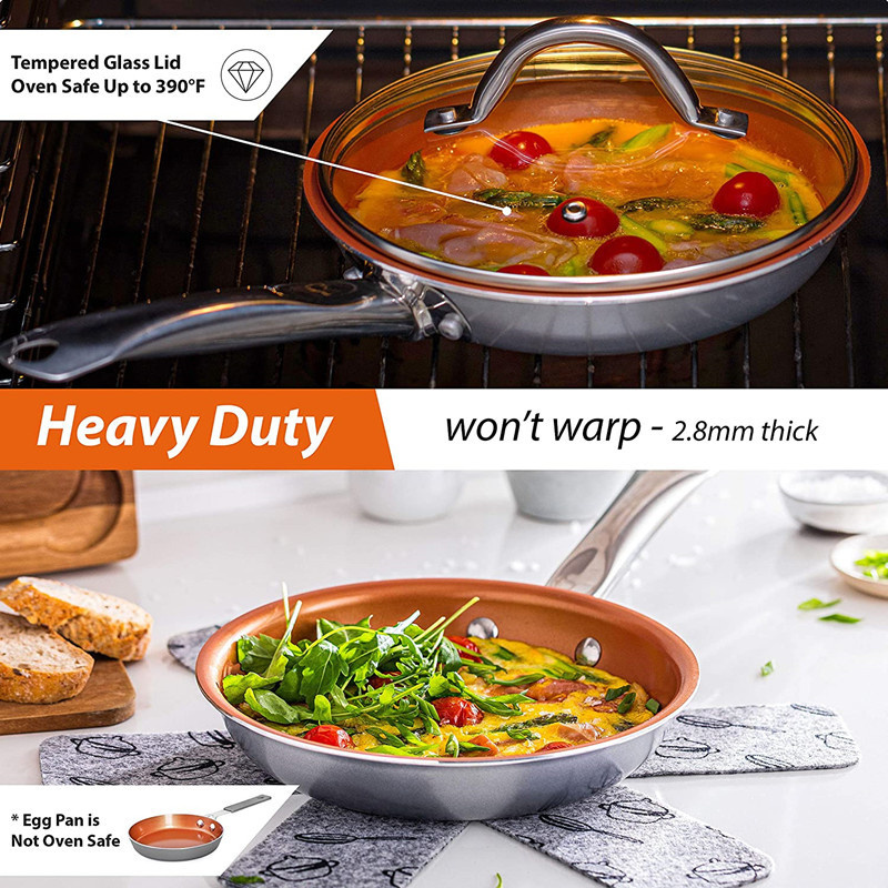 - SUITABLE FOR ALL STOVES INCLUDING INDUCTION - Unlike competing non-stick pot and pan sets, the copper cookware in this set is induction compatible and oven safe (not the egg pan).