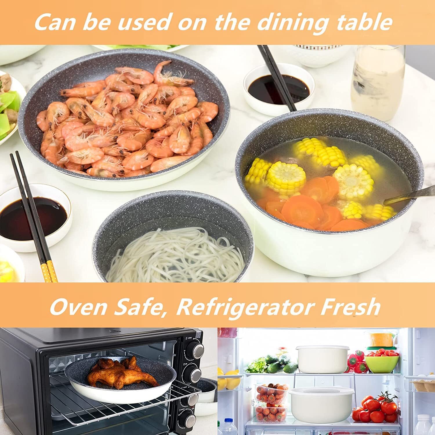 - 🥦Perfect Nonstick Coating: Nonstick stone-derived coating provides excellent food release and quick cleaning. Everything can slip out smoothly. 100% free of PTFE/PFOA/lead/cadmium, taking care of your health.