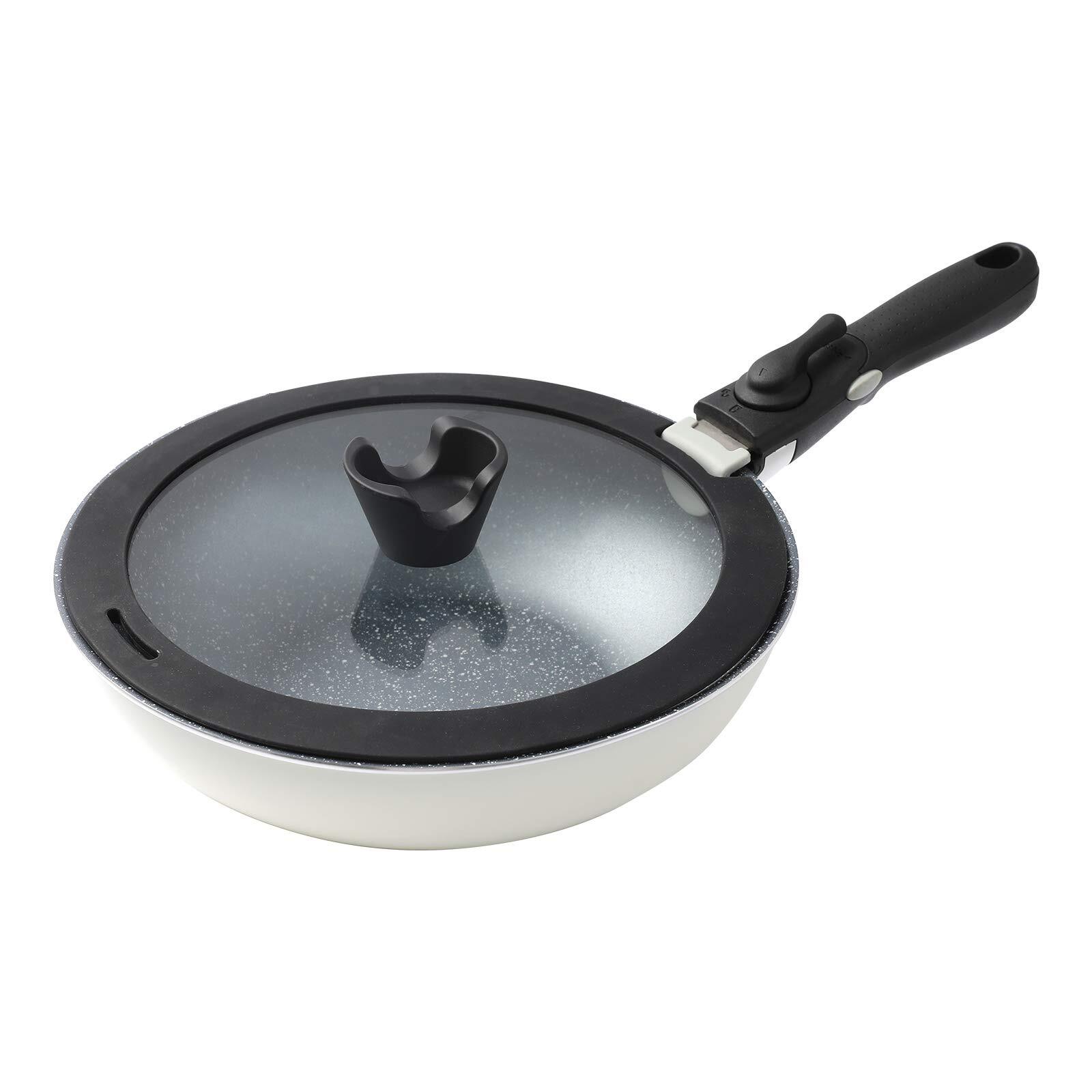 - 🍎6-piece nonstick cookware set includes: 8” mini frying pan, 9.5-inch fry pan, 2.5-quart saucepan with glass lid+silicone lid, removable handles