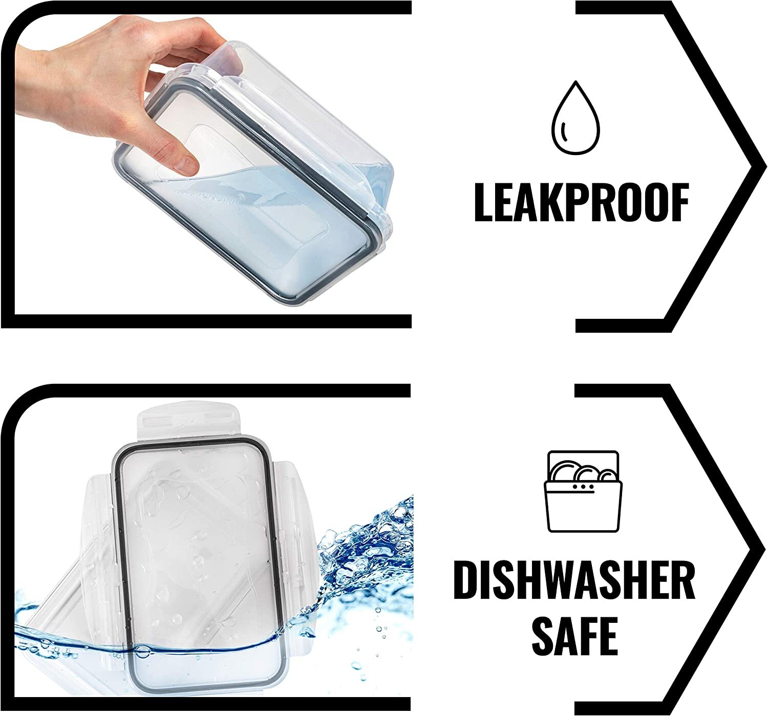 - No more spills - Leakproof 4-hinge locking system forms an airtight, watertight seal between container and lid. You can carry soups and sauces in your bag without worrying about spills.