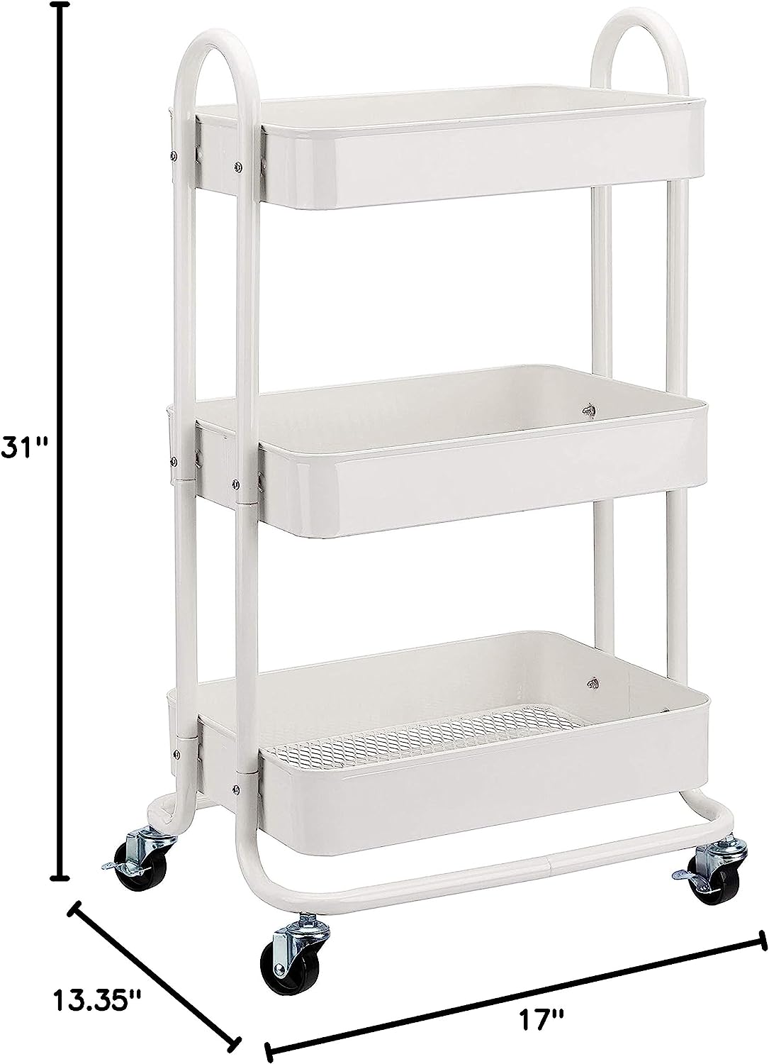 Basics 3-Tier Rolling Utility or Kitchen Cart - White
