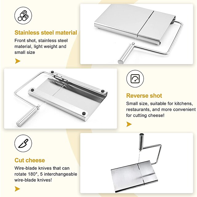 Cheese Slicer, Stainless Steel Cheese Slicer Household ham Cheese Slicer Cheese Slitter Kitchen Tools Steel Wire Cheese Slicer for Soft Cheese