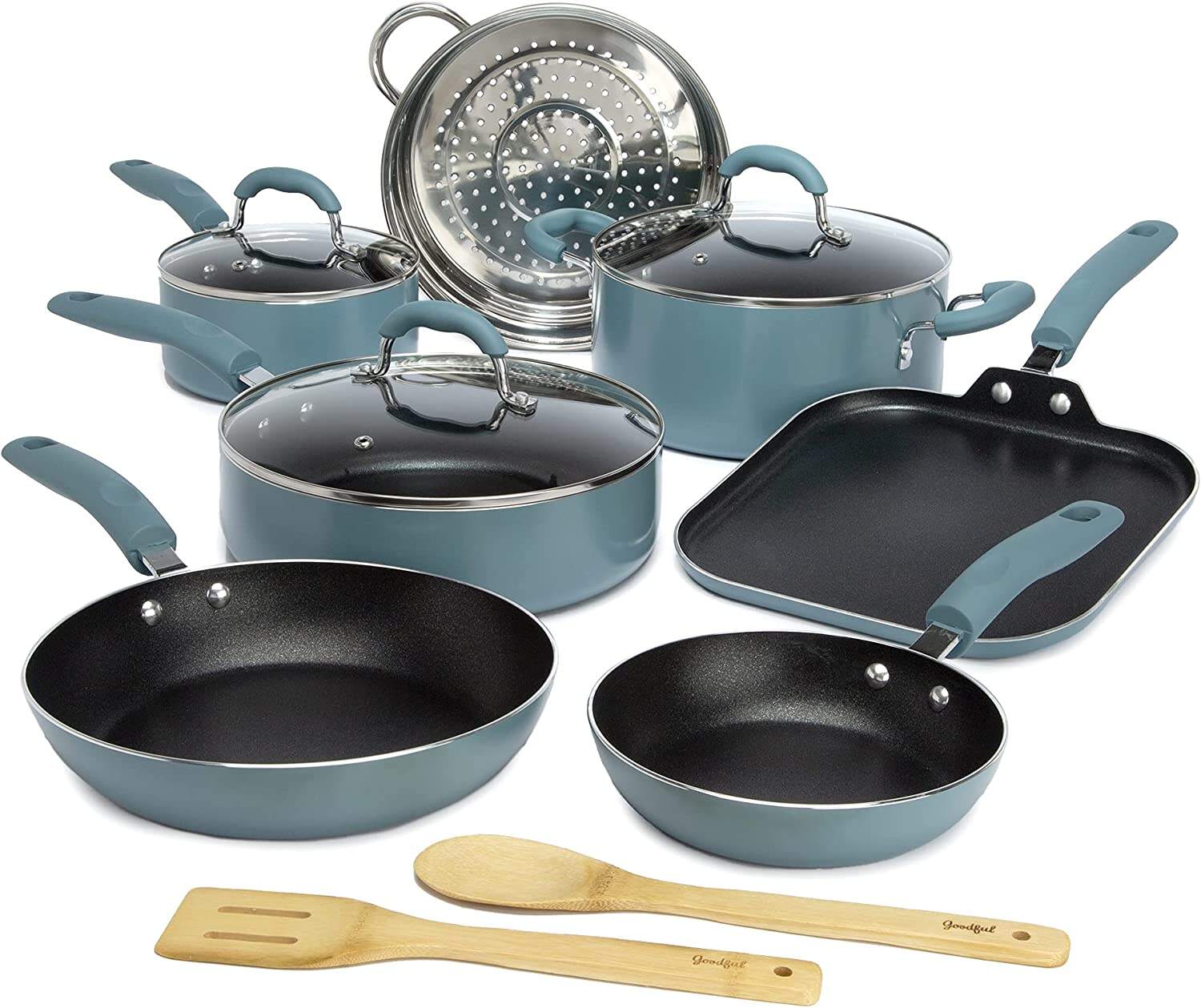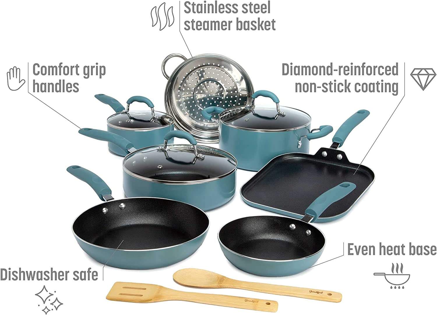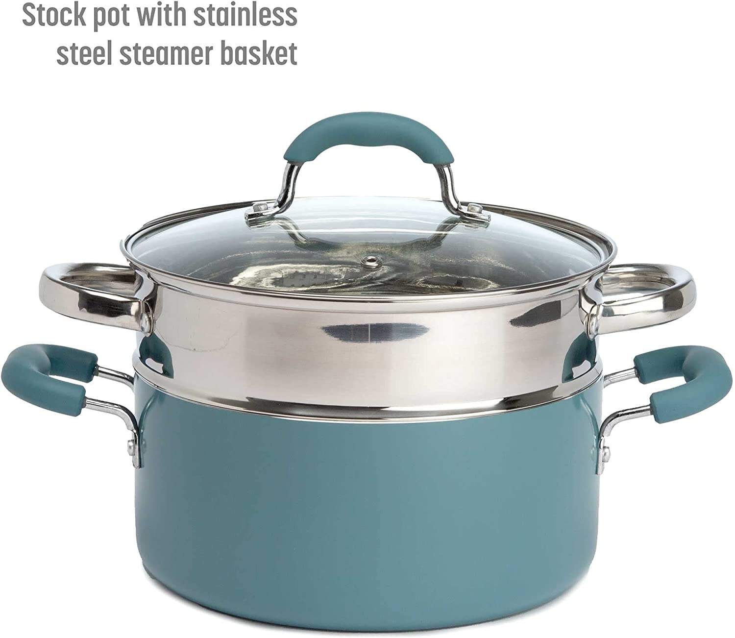 Collection Red 15-Piece All In One Tool and Gadget Set will outfit your entire kitchen with all the essential staples and accessories to help make cooking a breeze. This set is available in Red, Teal, Linen, Black and Cobalt Blue so you can choose the perfect color to compliment your kitchen's color scheme. This 15 piece set is crafted with durable stainless steel, nylon, and riveted ABS handles. The nylon head spatula is the perfect addition to the set, you can use it on your nonstick cookware without fear of scratches! This set includes an all-purpose spatula, a balloon whisk, a basting spoon, a flat whisk, a cheese grater, an ice cream scoop, a jumbo turner, a ladle, a potato masher, a meat tenderizer, a 14 inch nylon turner, a pizza cutter, a slotted spoon, a 13 in slotted spatula and an icing spreader. The Pioneer Woman All in One Tool and Gadget Set is dishwasher safe, so cleanup is a breeze. This dishwasher-safe kitchen utensils set provides a superb way to equip yourself for nearly any recipe you want to whip up, and it also makes a wonderful housewarming gift.