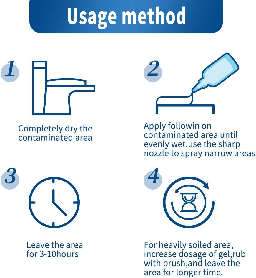 • SIMPLE TO USE - Just apply the gel evenly in need of cleaning place, afther holding 3-5 hours,and rinse with water or wipe with a towel.
