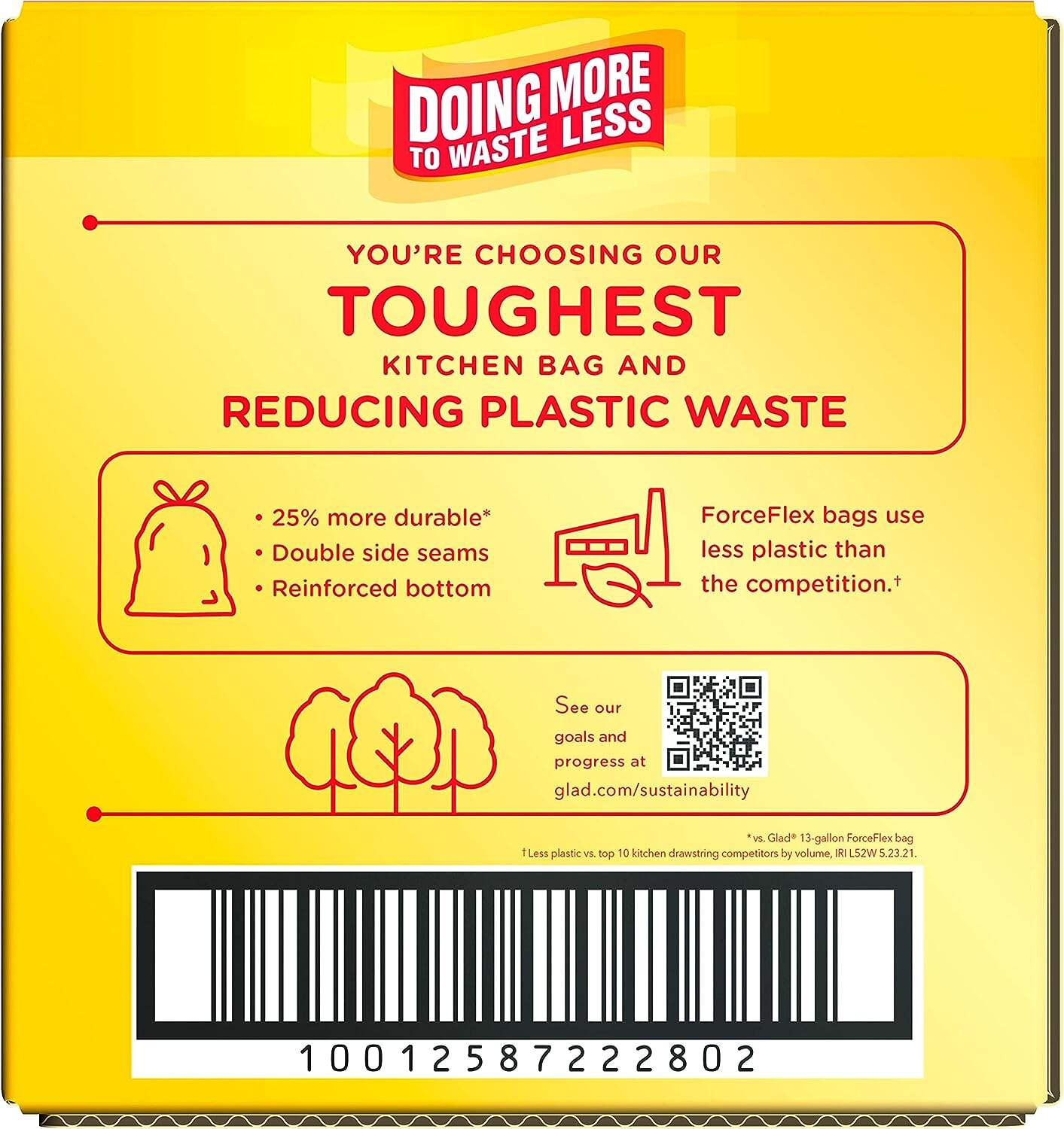 - PRODUCTS WITH LESS PLASTIC: Glad ForceFlex MaxStrength Tall Kitchen Trash Bags are made with less plastic than the competition** without sacrificing strength