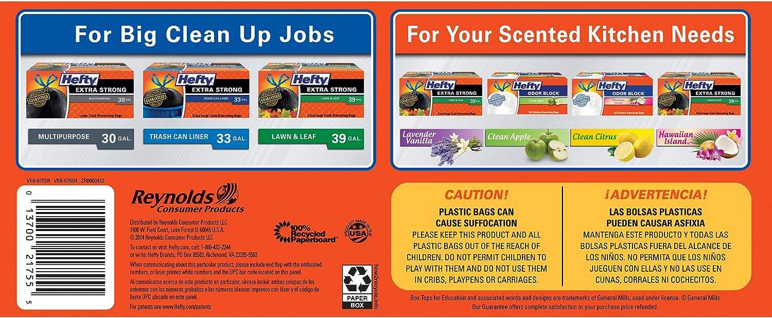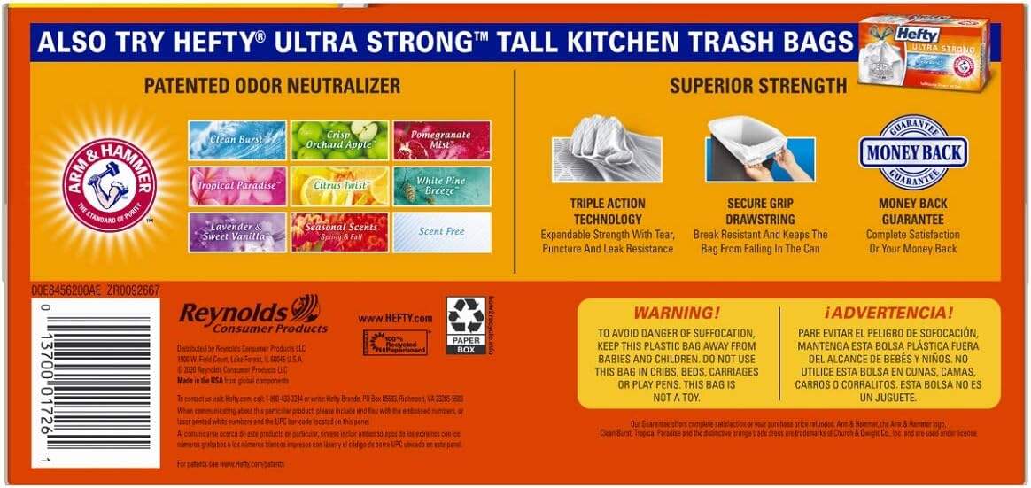 • Hefty Strong Tall Kitchen Trash Bags, Unscented, 13 Gallon, 90 Count, White,Packaging may vary