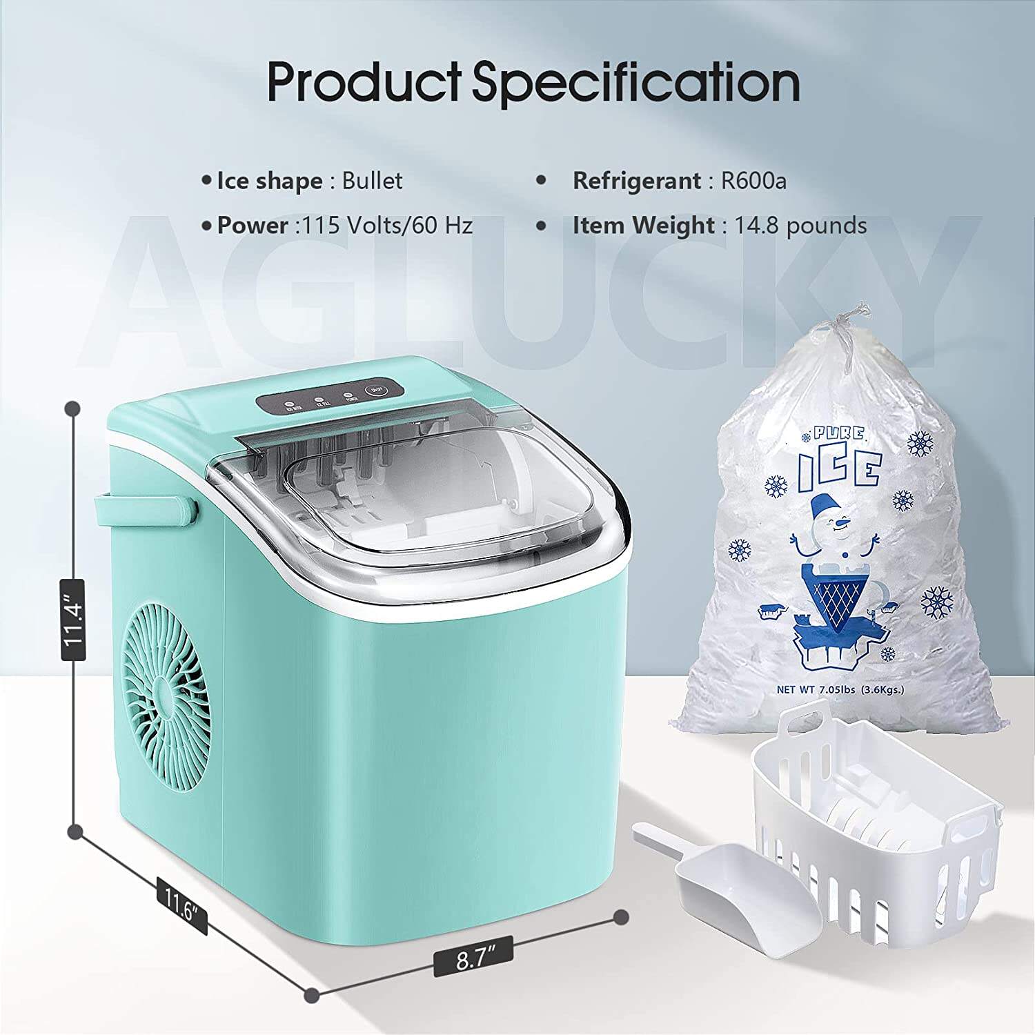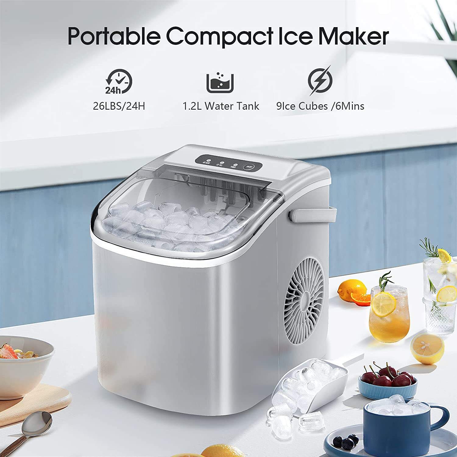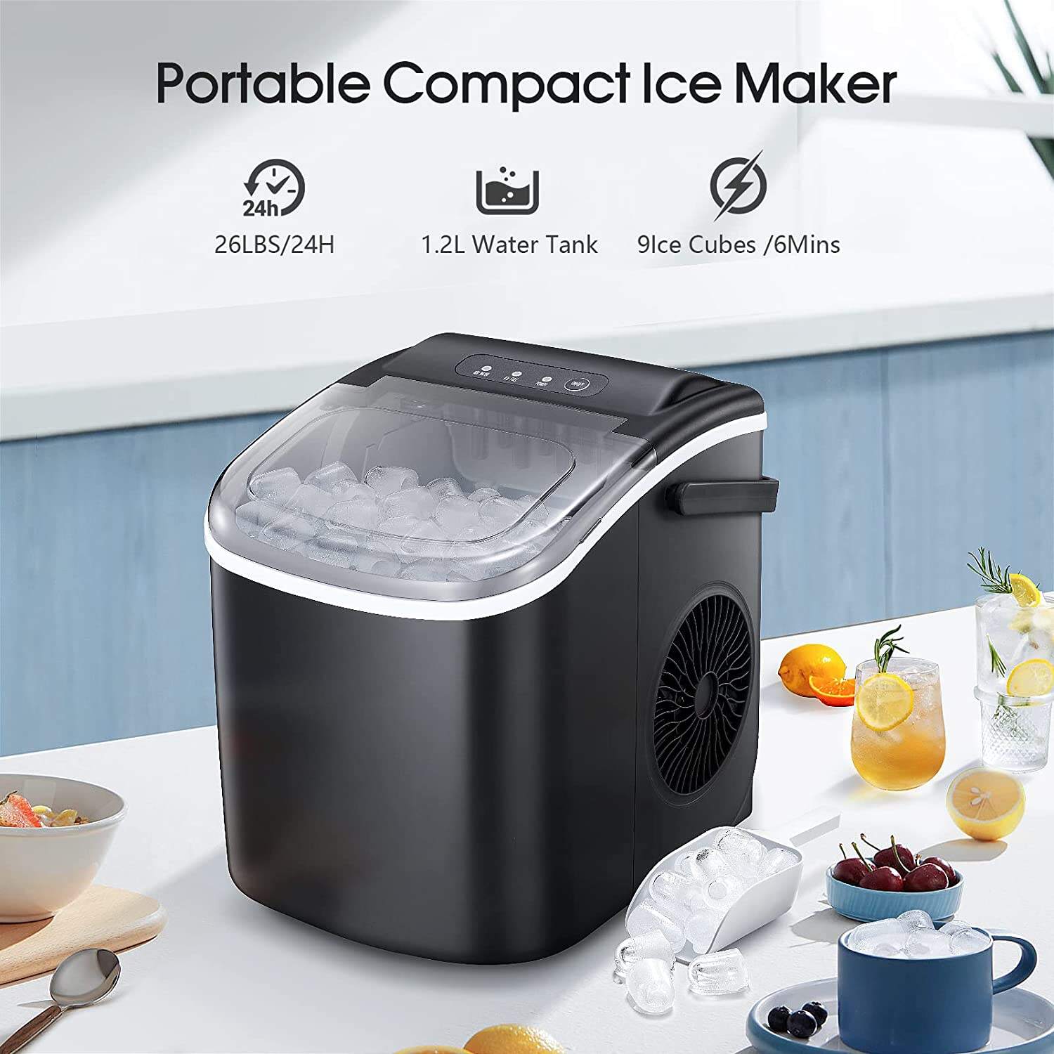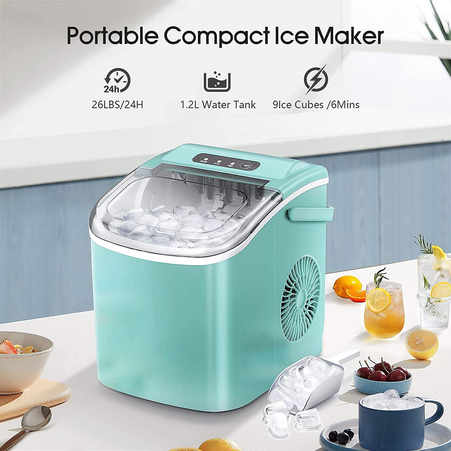 • Ice Makers Countertop,Protable Ice Maker Machine with Handle,Self-Cleaning Ice Maker, 26Lbs/24H, 9 Ice Cubes Ready in 8 Mins, for Home/Office/Kitchen