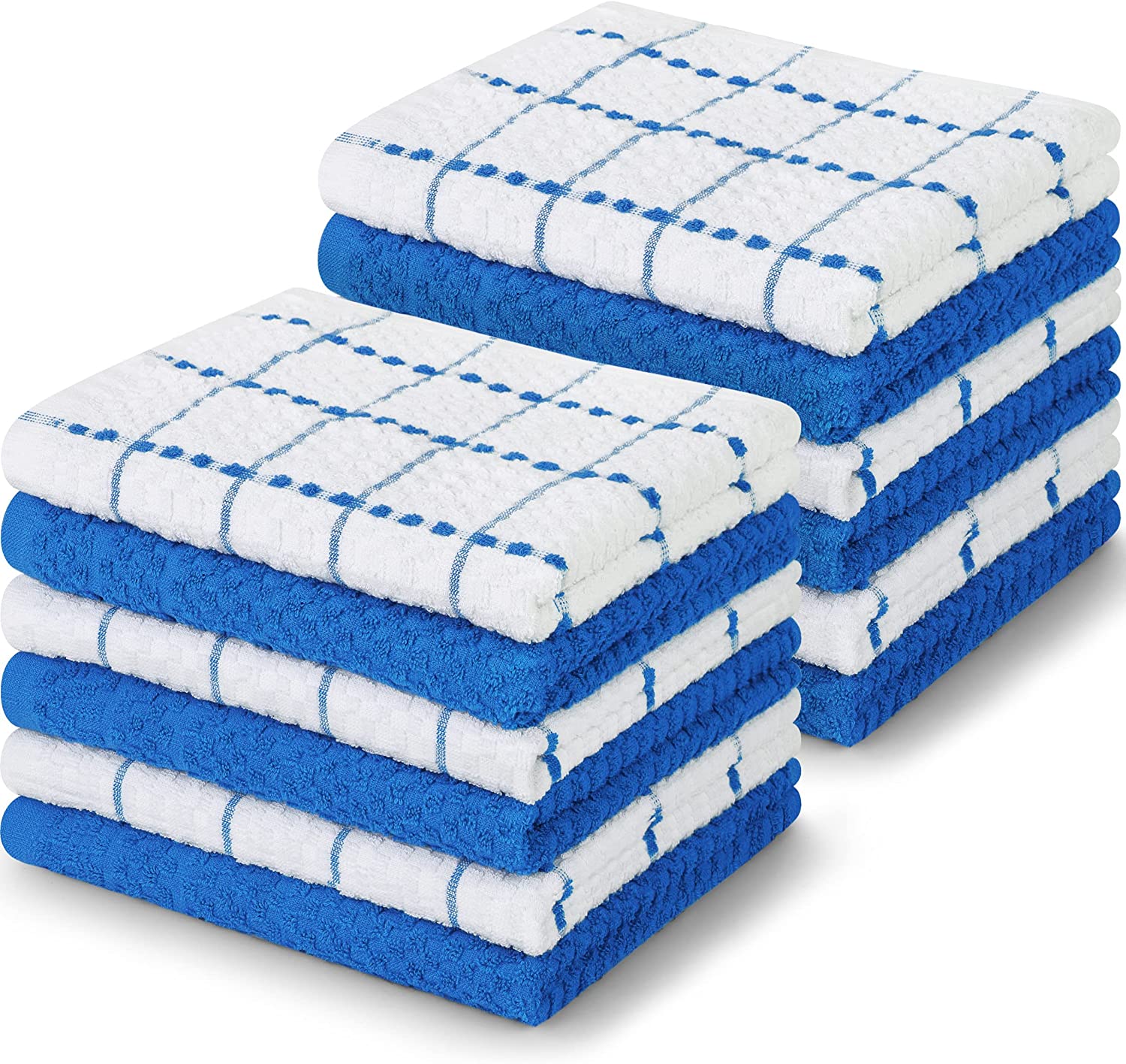 • VALUE PACK- Set includes 12 cotton dish towels with six black and six white dobby weave style kitchen towels measuring 15 x 25 inches