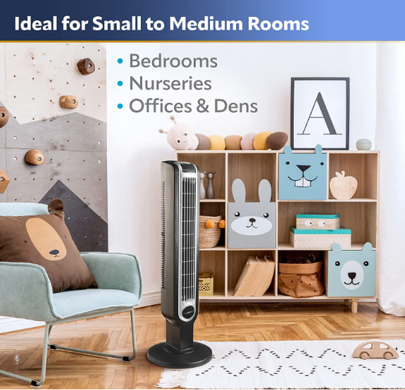- 3 Whisper Quiet Speeds: Provide smooth, consistent air flow. The unique space saver design and quiet operation make this fan ideal for a child’s room bedroom, or home office.