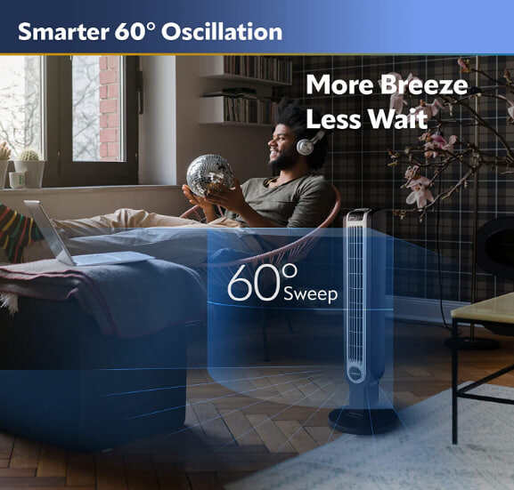 - Widespread Oscillation: Allows you to direct airflow where you need. Turn on oscillation and the fan will gently direct air side to side, allowing the air to distribute and cool the room.
