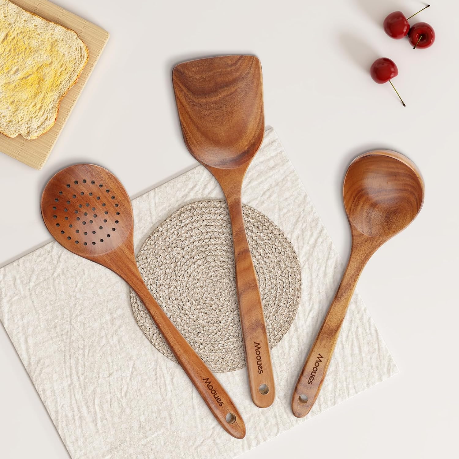 - 👩🍳【After Sales Service】Wooden cutlery set is perfect for display as souvenir or kitchen decoration, so it is also an ideal gift choice for anyone who likes to cook. If you have any questions about the product, we will within 24 hours help you solve the problem. (It is normal for natural wooden kitchen utensils to have slightly different colors).