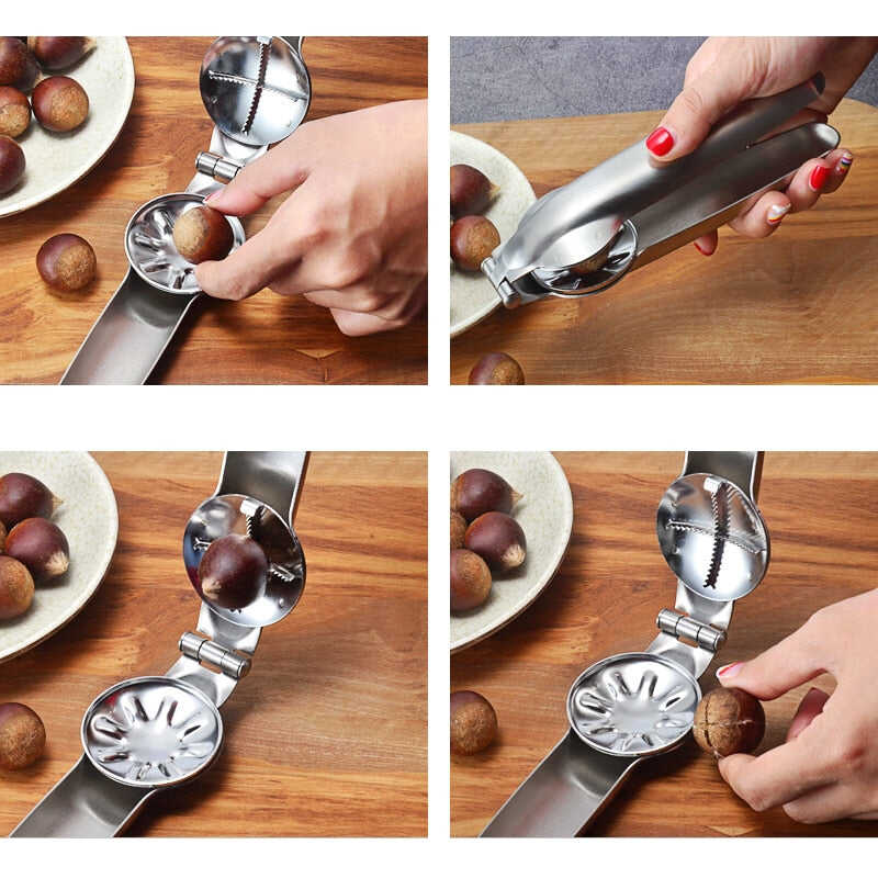 • Nutcracker Chestnut Clip, 2 in 1 Stainless Steel Quick Nuts Cracker Kitchen Tools Chestnut Clip Walnut Pliers Metal Sheller Nut Opener Cutter Gadgets